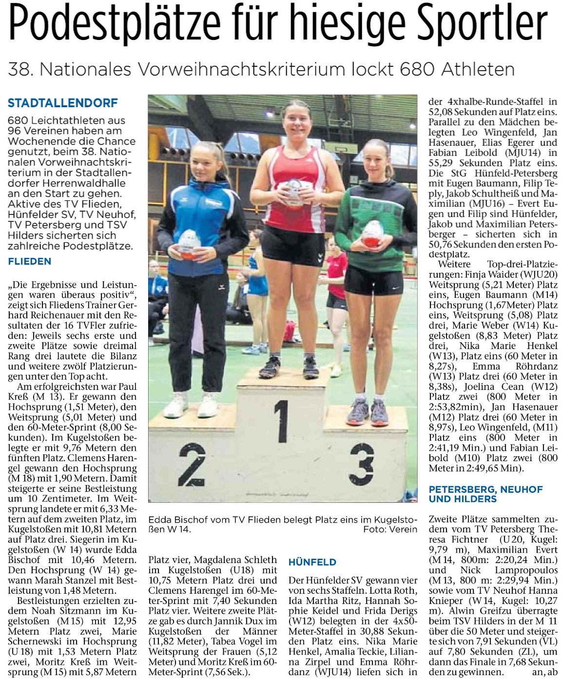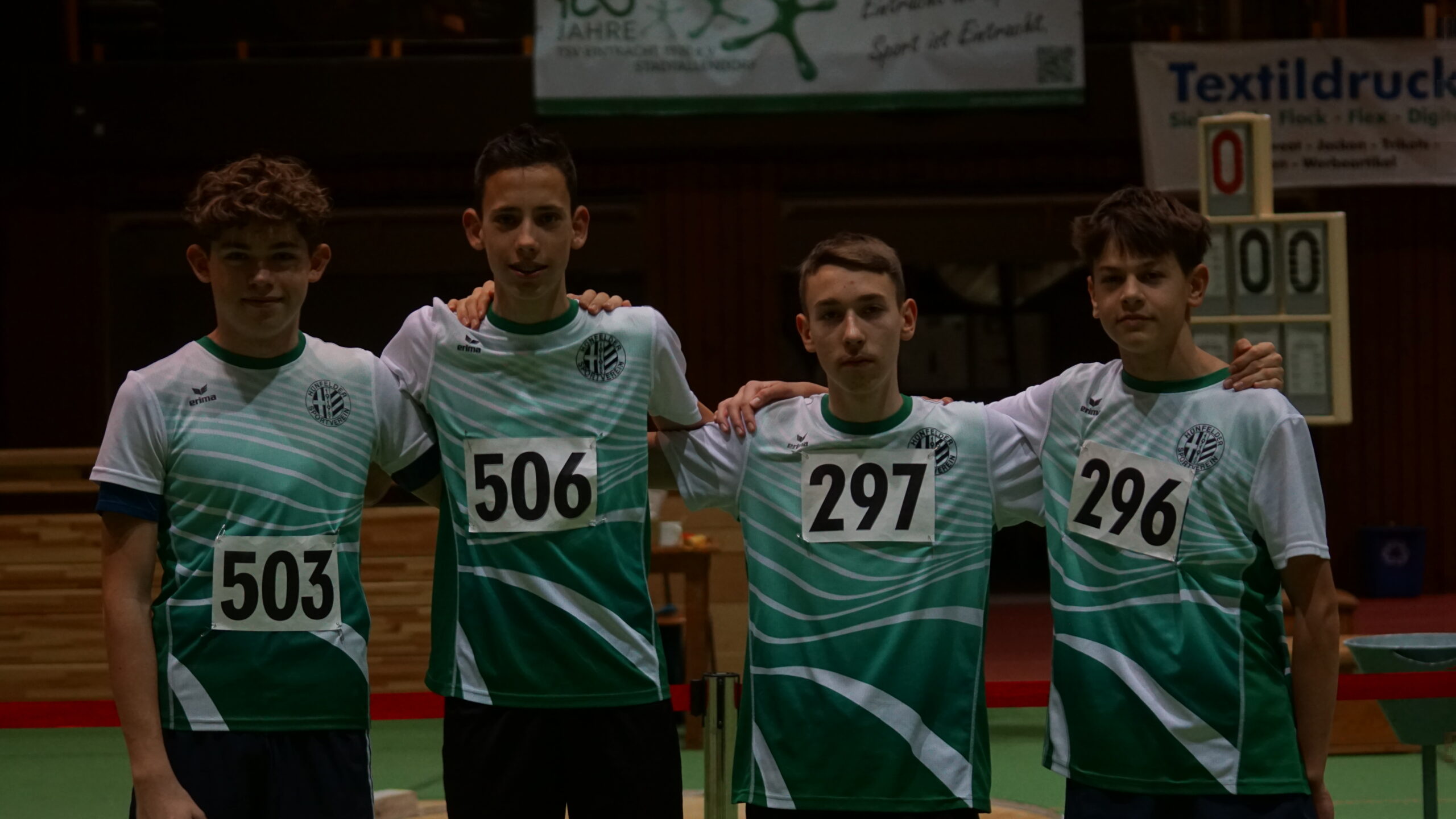 - 1.Platz, MJU16, 4xhalbe-Runde-Staffel in 50,76 Sekunden; StG Hünfeld-Petersberg; Eugen Baumann, Filip Teply, Jakob Schultheiß und Maximilian Evert; Eugen und Filip sind Hünfelder, Jakob und Maximilian sind Petersberger