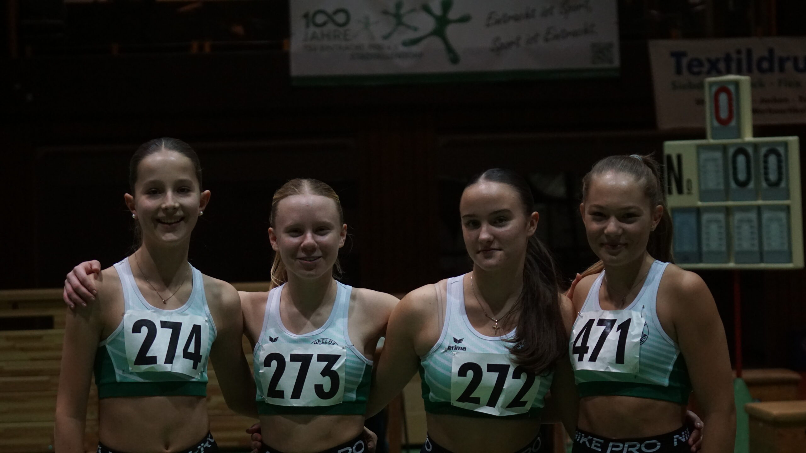 - 1.Platz, WJU14, 4xhalbe-Runde-Staffel in 52,08 Sekunden; Nika Marie Henkel, Amalia Teckie, Lilianna Zirpel und Emma Röhrdanz