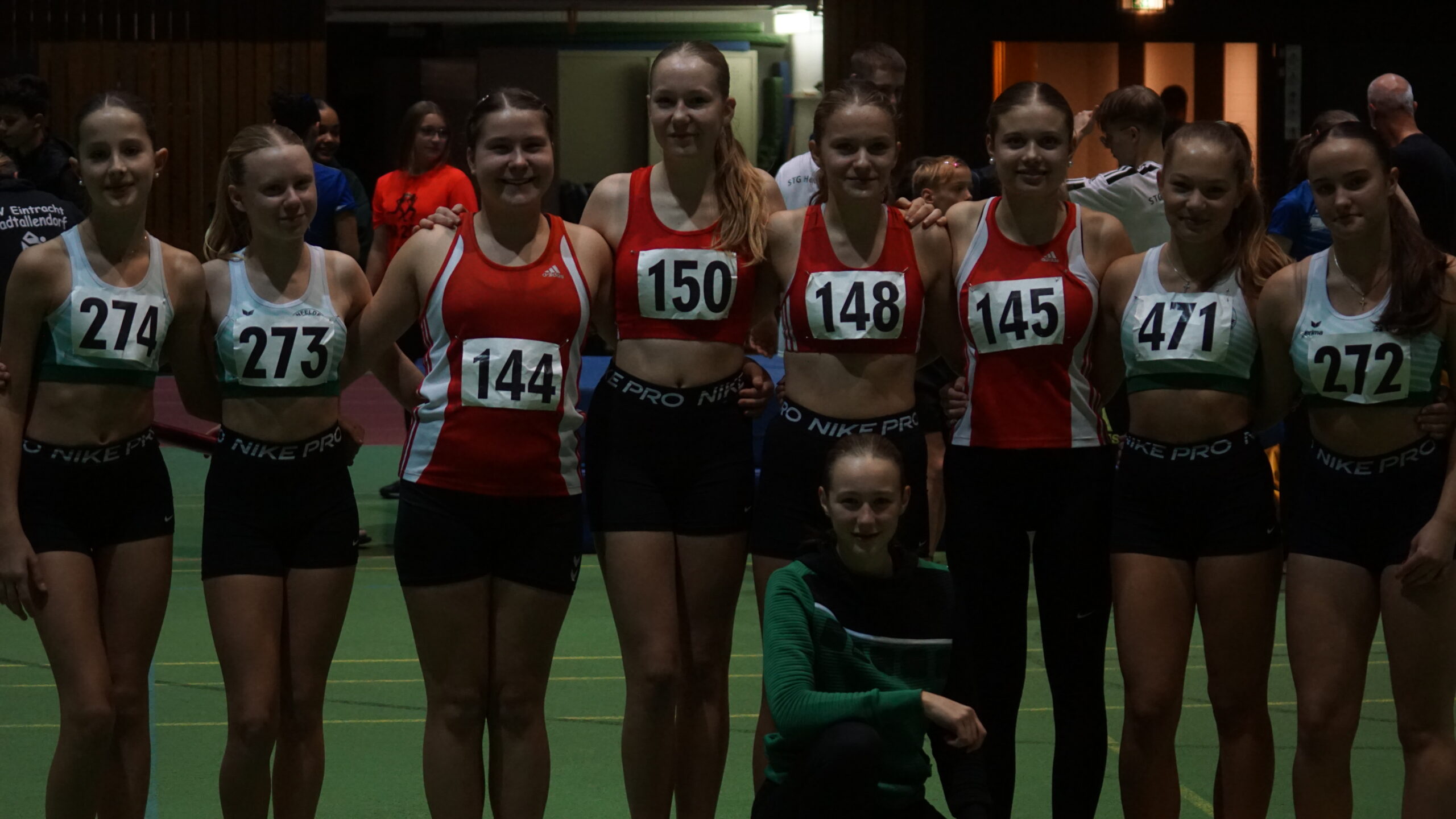 Bild RECHTS: Was soll uns das Bild sagen? Das sind 9 Athletinnen vom TV Flieden, vom TV Jahn Neuhof und vom Hünfelder SV. Und diese 9 Athletinnen und einige mehr aus den 3 Vereinen haben ein gemeinsames Ziel für das Jahr 2024, sie wollen gemeinsam zur „Team-DM U16“ nach Lage!