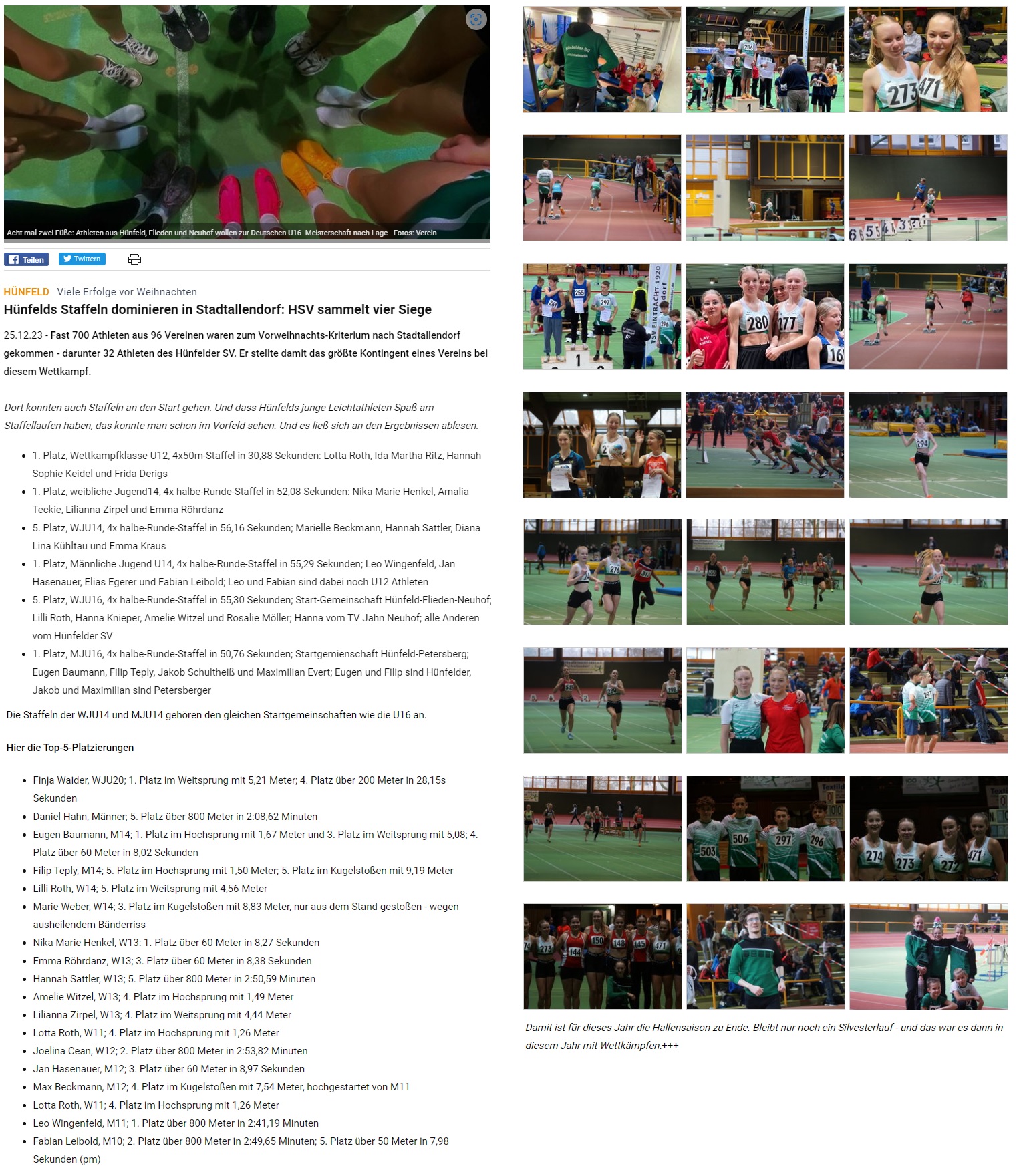 - 5.Platz, WJU16, 4xhalbe-Runde-Staffel in 55,30 Sekunden; StG Hünfeld-Flieden-Neuhof; Lilli Roth, Hanna Knieper, Amelie Witzel und Rosalie Möller; Hanna vom TV Jahn Neuhof, allen Anderen vom Hünfelder SV