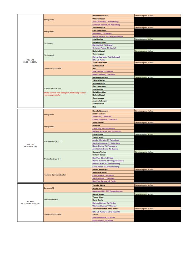 Los geht es um 09:30 Uhr mit der Kinderleichtathletik der U12. Hier starten Kinder der Jahrgänge 2013 und 2014 in den Disziplinen „Fünfsprung, Schlagwurf, Hindernis-Sprintstaffel und einem 1.500m langen Stadion-Cross“. Kurz davor starten die Kinder in der Altersklasse U8 mit dem Schlagwurf, einer Hindernis-Sprintstaffel und einer Einbeinhüpf-Staffel). Danach folgt ab 12:00 Uhr die Altersklasse U10 mit den Disziplinen „Schlagwurf, Wechselsprünge, Hinder-Sprintstaffel“).