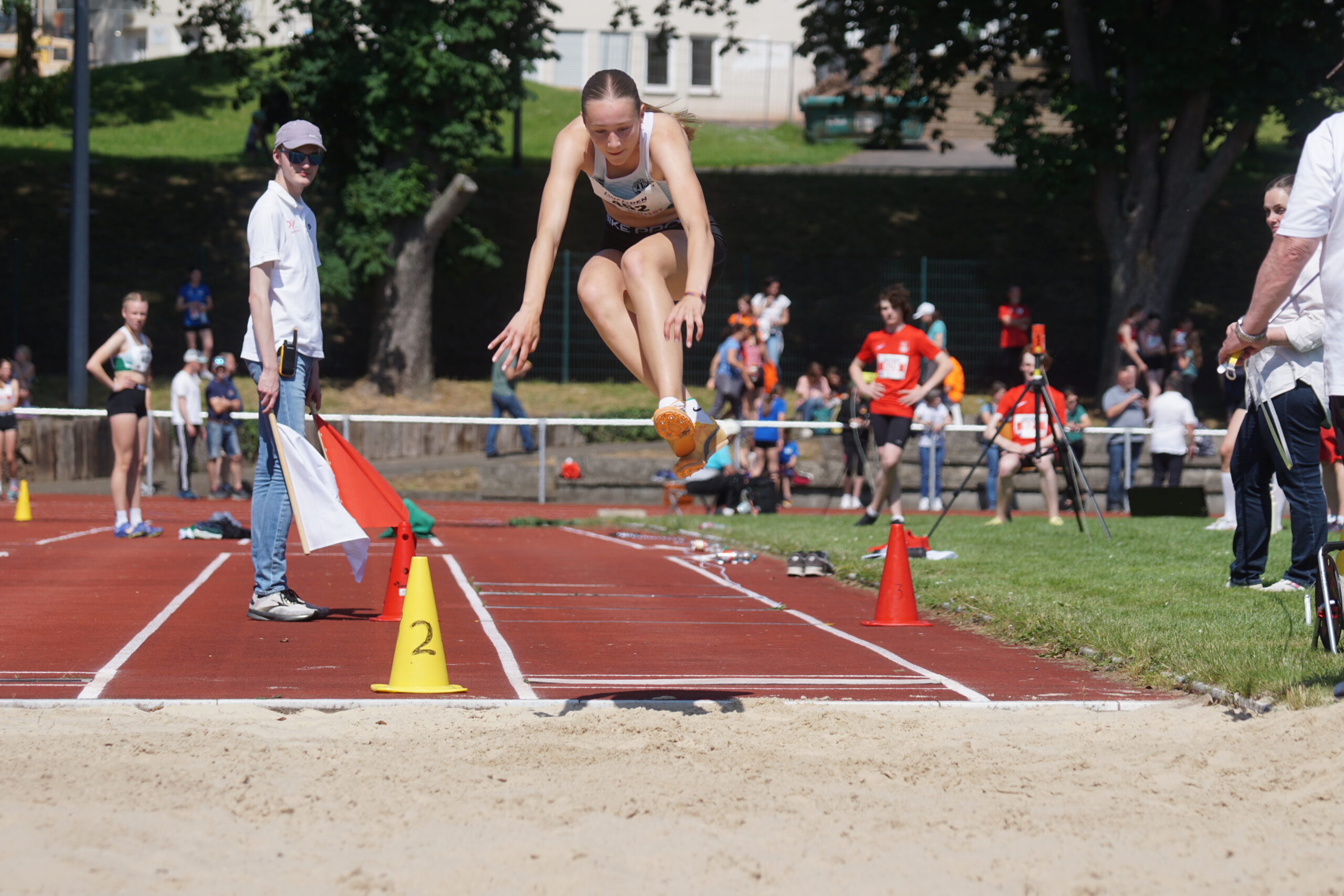 Ausgangspunkt des Ausflugs nach Bad Sooden-Allendorf war der Wunsch von Marie Weber auch mal Dreisprung ausprobieren zu dürfen. Nach ihrem Bänderriss von Ende letztem Jahr mussten wir da lange warten. Ja, und dann waren die Leistungen in einer ersten Trainingseinheit so gut, dass Marie das in dieser Einheit gezeigte auch direkt mal im Wettkampf umsetzen wollte. Ein kurzer Blick in den Wettkampfkalender und der Dreisprung für Marie war bei unseren Freunden in Bad Sooden-Allendorf gebucht. Und Lilli Roth, die vor kurzem auch spontan mal Dreisprung gemacht hatte und gleich die Norm für die Süddeutschen gesprungen war, die wollte dann auch mit!
