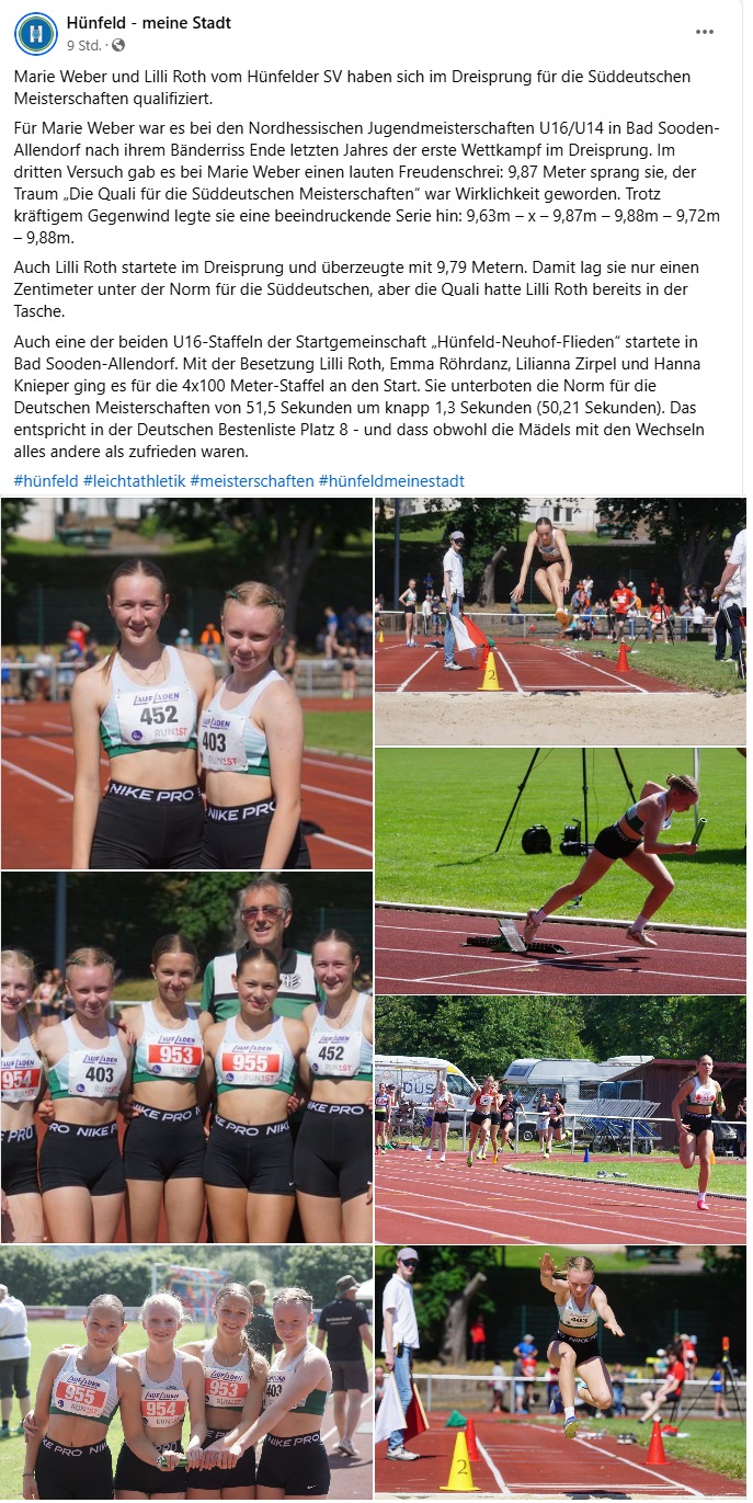 Nordhessische Jugendmeisterschaften U16/U14 in Bad Sooden-Allendorf, da fragt man sich, weshalb startet man am Wochenende des 3. Sparkassen-Grand-Prix in Neuhof!? Ganz einfach, weil da Athletinnen sind die einige große Ziele vor Augen haben, dafür einiges machen müssen und das alles so dosiert machen müssen, dass sie in keine Überlastungssituationen laufen. Zu viel des Guten ist eben nicht gut!