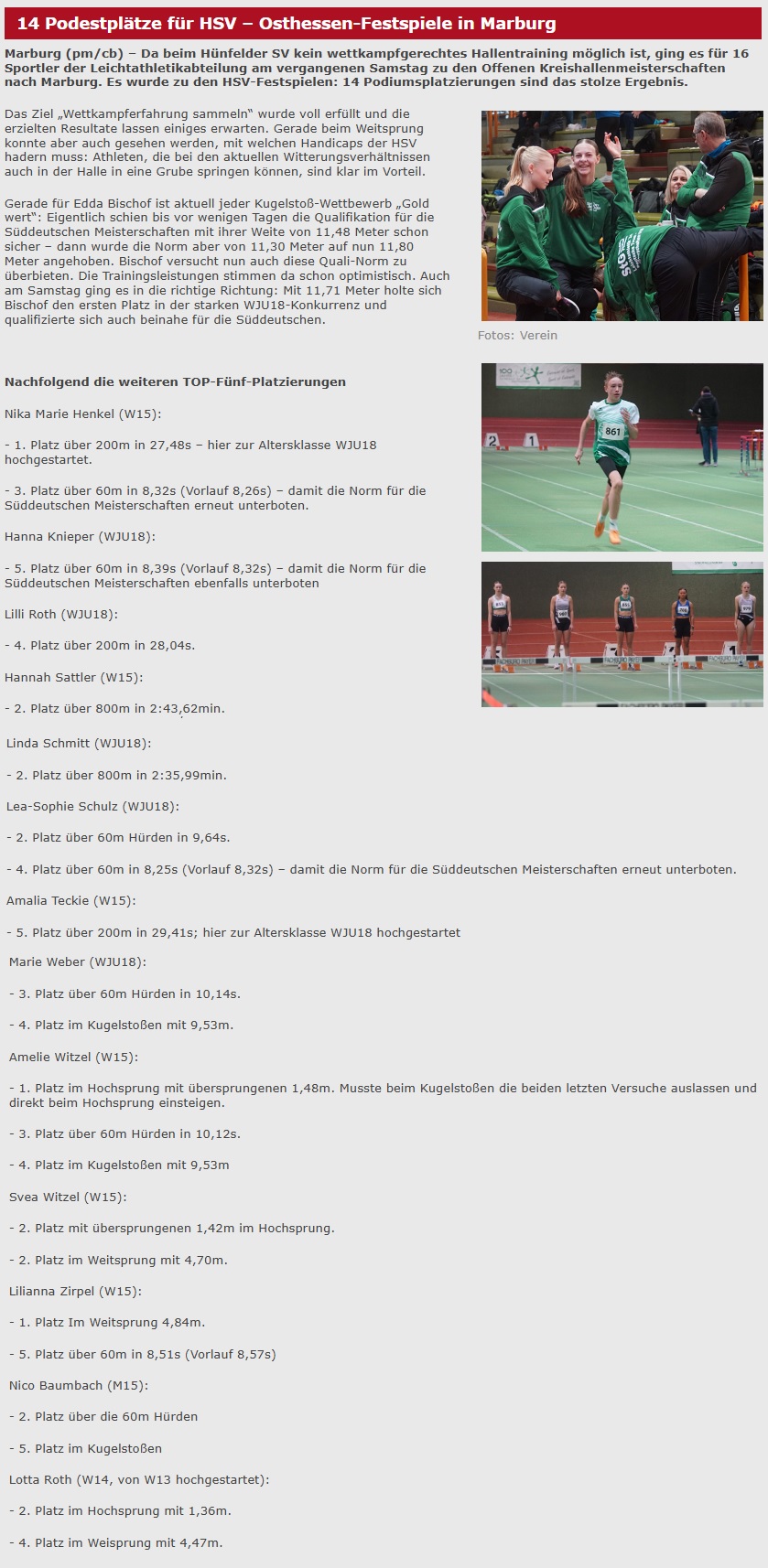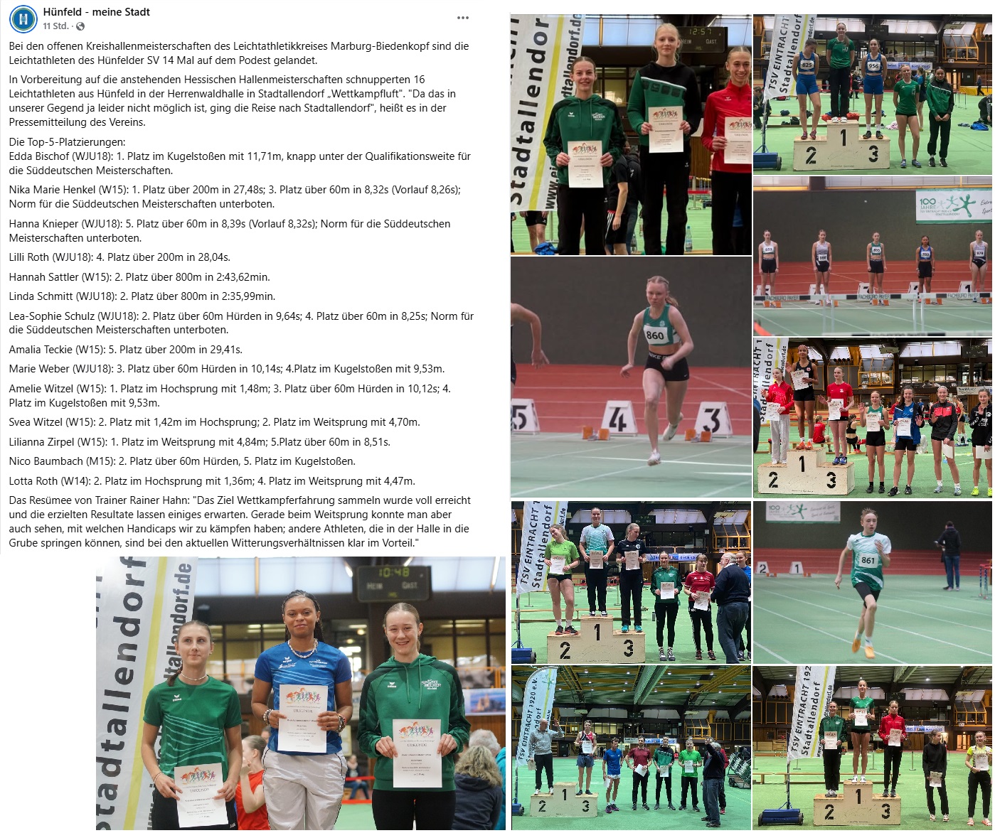 Offene Kreishallenmeisterschaften des Leichtathletikkreis Marburg – Biedenkopf in der Herrenwaldhalle in Stadtallendorf – 14 mal auf dem Podest