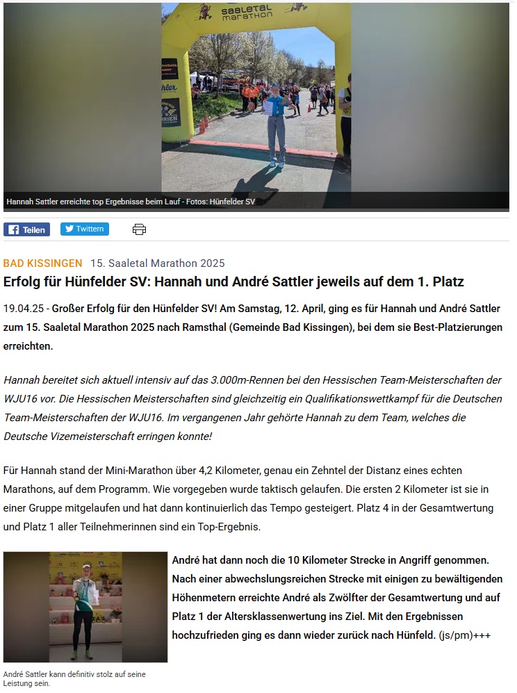 Am vergangenen Samstag ging es für Hannah und André Sattler zum 15. Saaletal Marathon 2025 nach Ramsthal.