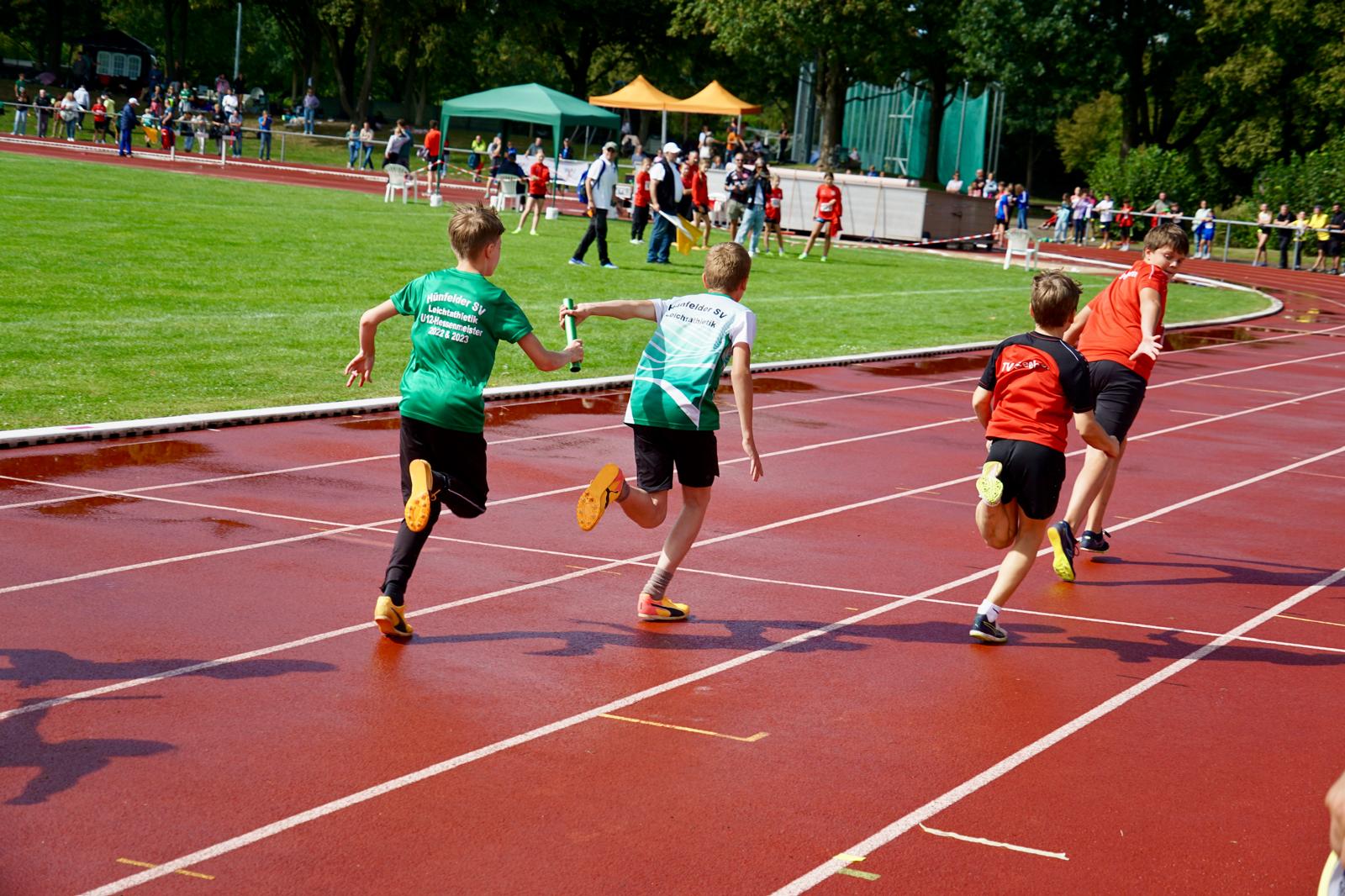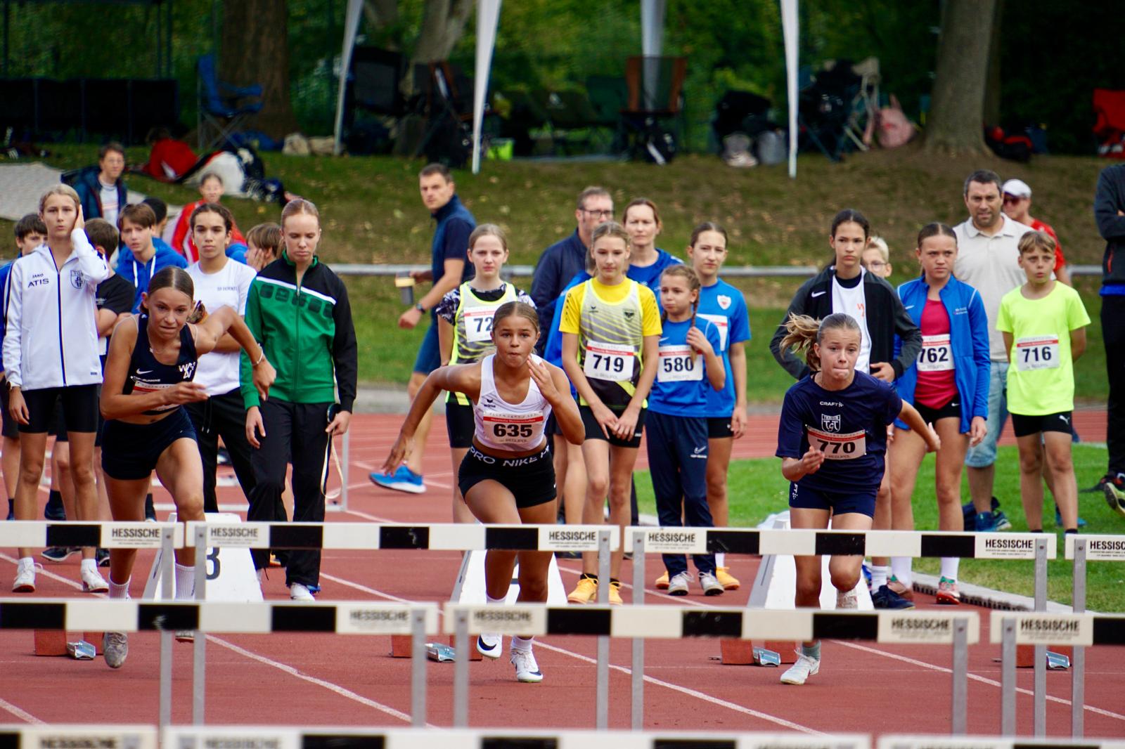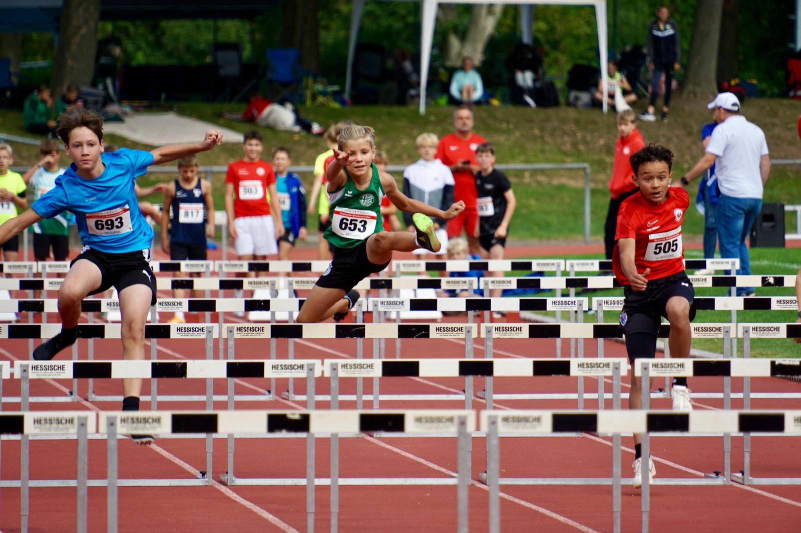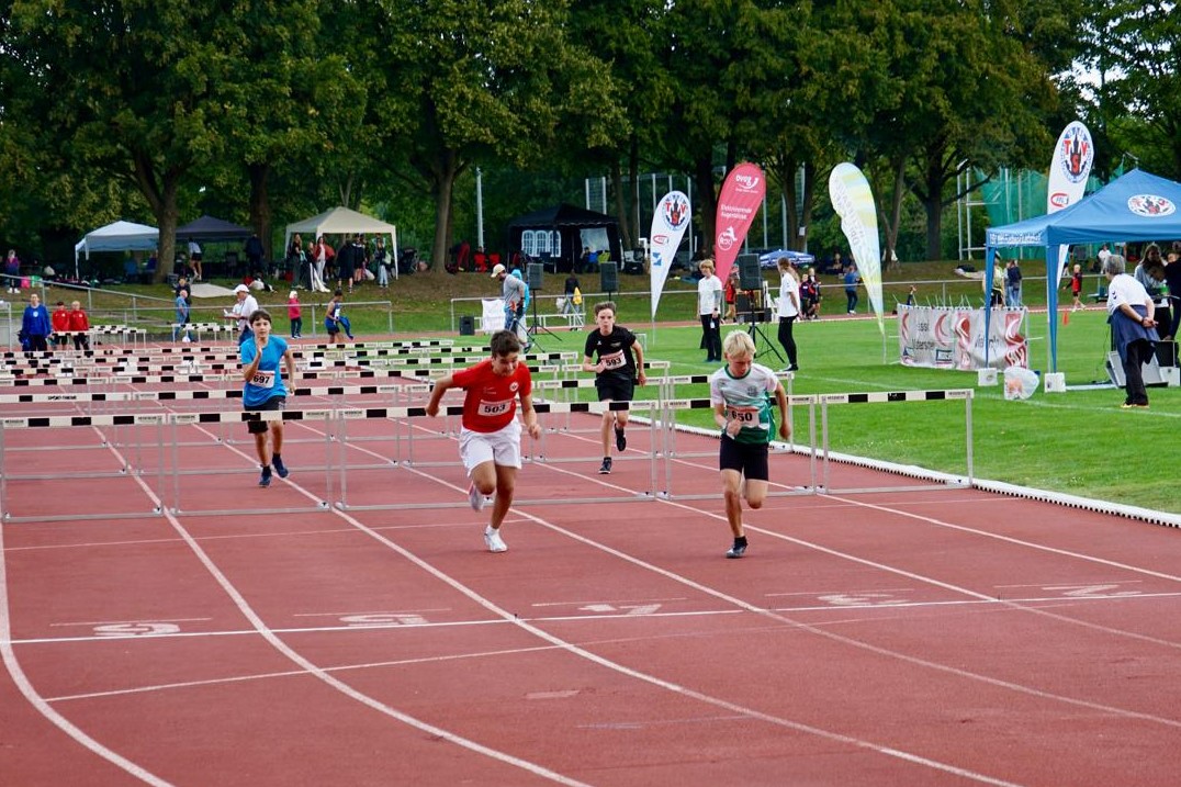 Der heutige Samstag stand leichtathletisch gesehen in Hessen ganz im Zeichen des Hessenfinales der Deutschen Jugend-Mannschaftsmeisterschaft U14 (DJMM U14) auf der Sportanlage Burgfeld in Friedberg. Die Wettervorhersage war nicht sehr verheißungsvoll, und der Regen kam dann auch. Und der wirbelte den Zeitplan dann am frühen Nachmittag auch schon etwas durcheinander. Den Wettkämpfen tat das aber keinen Abbruch. Man sah tolle Leistungen und spannende Wettkämpfe.