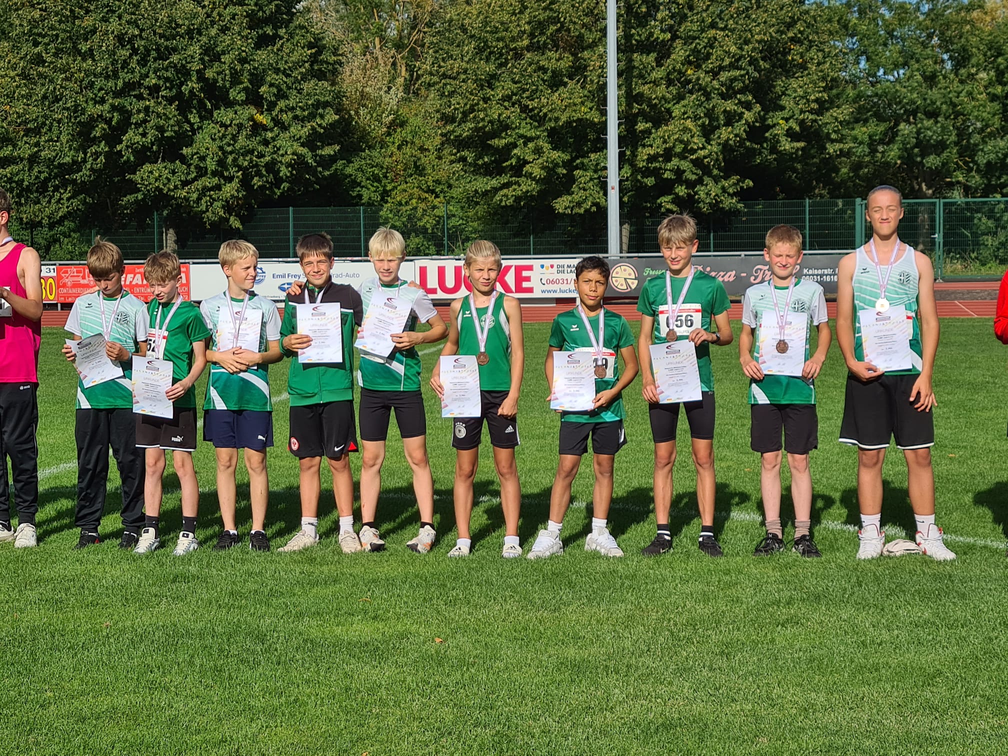 Ziel war möglichst Platz 5 zu erreichen. Und dann kam alles ganz anders. Das was im Vorkampf nicht geklappt hatte klappte. Die Jungs steigerten sich von Disziplin zu Disziplin. Vor dem abschließenden 800m-Lauf war man gar auf Platz 4. Und nach dem 800m-Lauf war es dann sogar Platz 3 mit 6.161 Punkten, 508 Punkte mehr wie im Vorkampf. Von Platz 2 nur 28 Punkte entfernt.