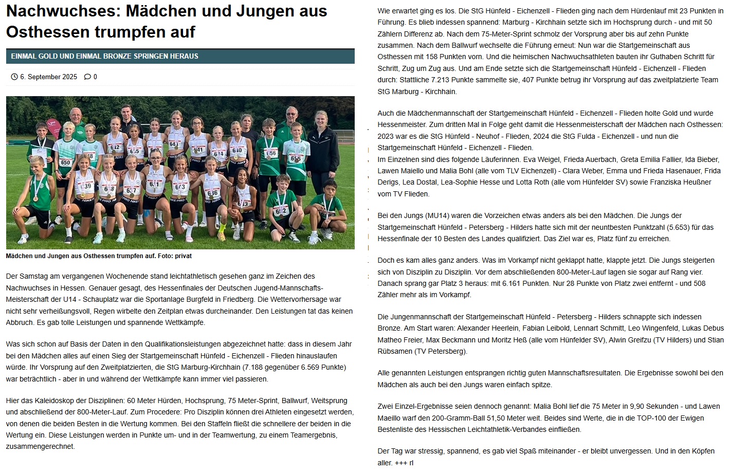 In 2023 holten die Mädels der StG Hünfeld-Neuhof-Flieden die Hessenmeisterschaft, in 2024 waren es dann die Mädels der StG Fulda-Eichenzell und nun in 2025 die Mädels der StG Hünfeld-Eichenzell-Flieden. Und das sind in diesem Jahr: