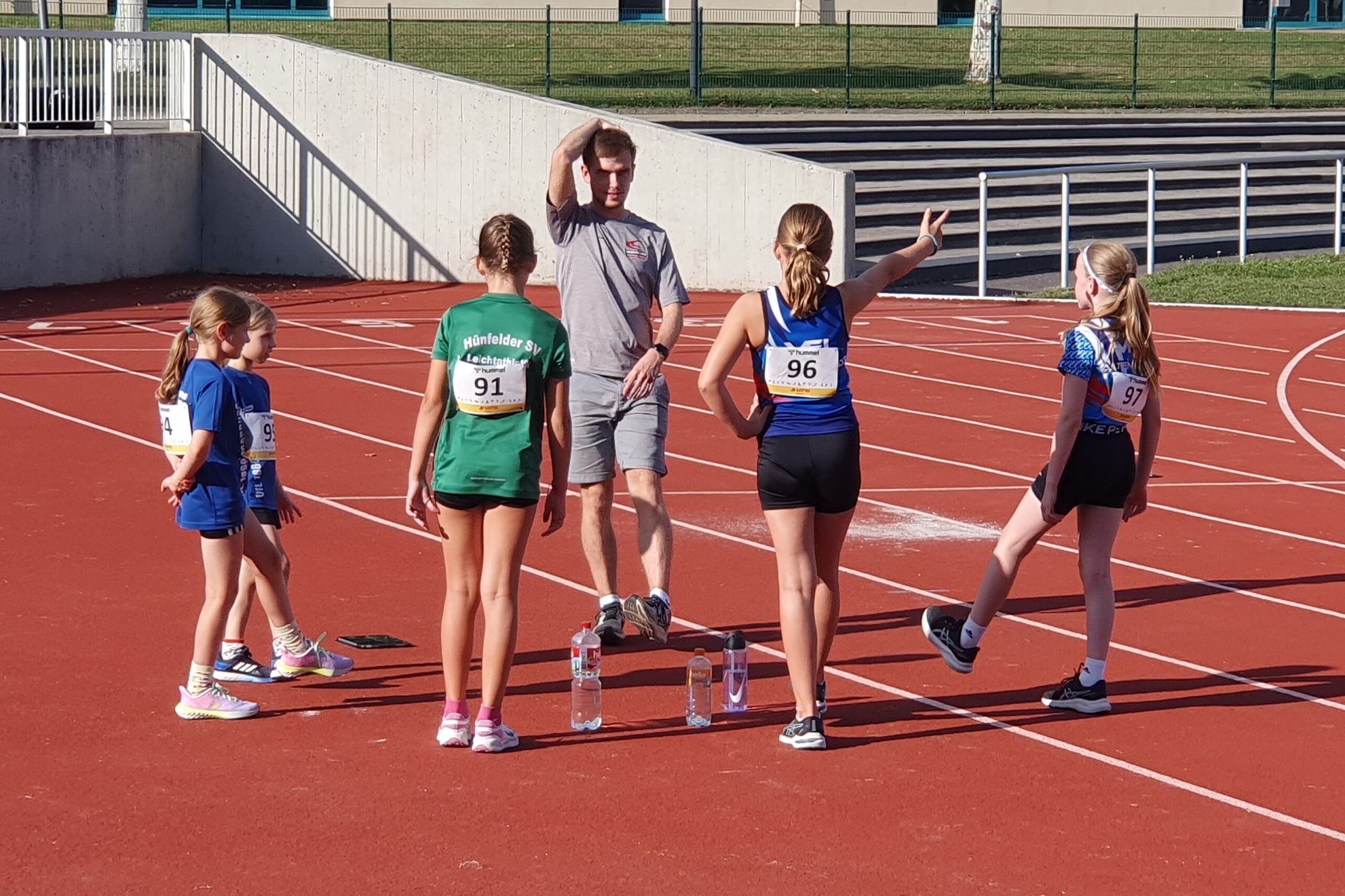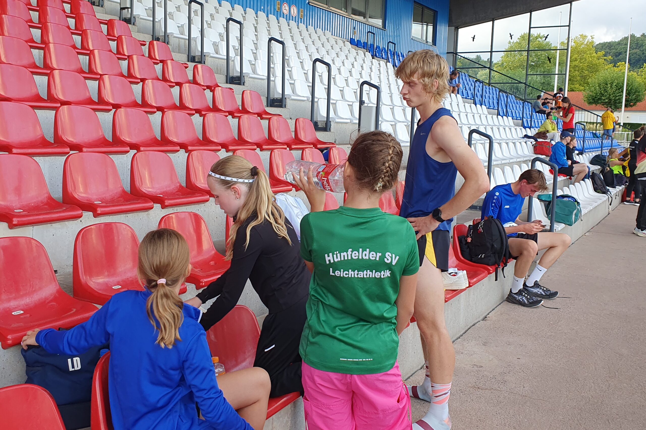 Kleine Randnotiz! Lasse Rohrssen, der aktuell Beste deutsche U20-Geher über 5.000m auf der Bahn war auch da. Lea kennt ihn vom Gehwettbewerb in Hünfeld. Für die Mädels war es nach dem Wettkampf toll, dass Lasse noch mit ihnen auf Augenhöhe geredet hat. Die üblichen Fragen/ der Austausch nach dem Wettkampf. Wie viele Meter seid ihr gegangen, wie war eure Zeit, wie geht es euch? … Einfach schön zu sehen!