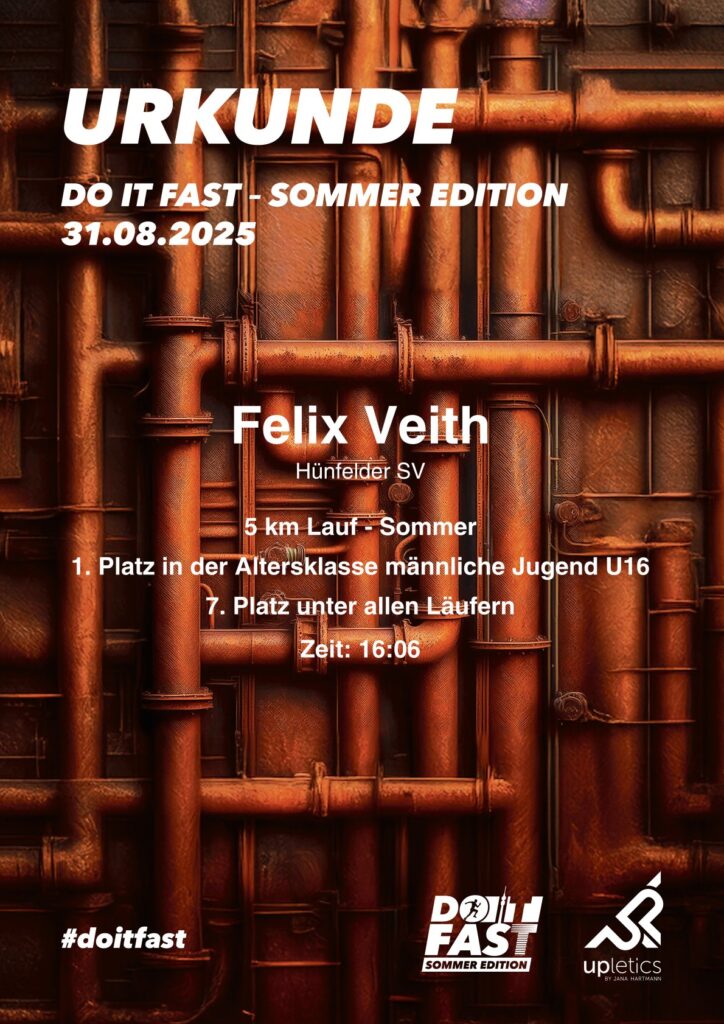 Felix war in Dortmund beim Straßenlauf-Laufevent „DO IT FAST – Sommer“ über 5 Kilometer am Start. Der 2.5 km Rundkurs ist amtlich vermessen und damit bestenlistenfähig. Der flache Rundkurs ist bekannt für schnelle Zeiten. Und Felix kann richtig schnell. Das hat er erst vor kurzem beim TOP-besetzten Abendsportfest am 20. August in Pfungstadt deutlich gezeigt.