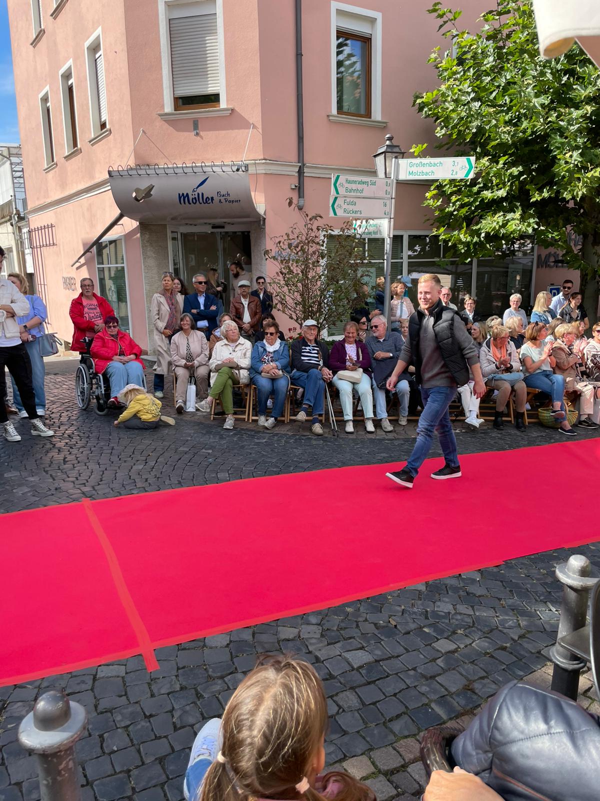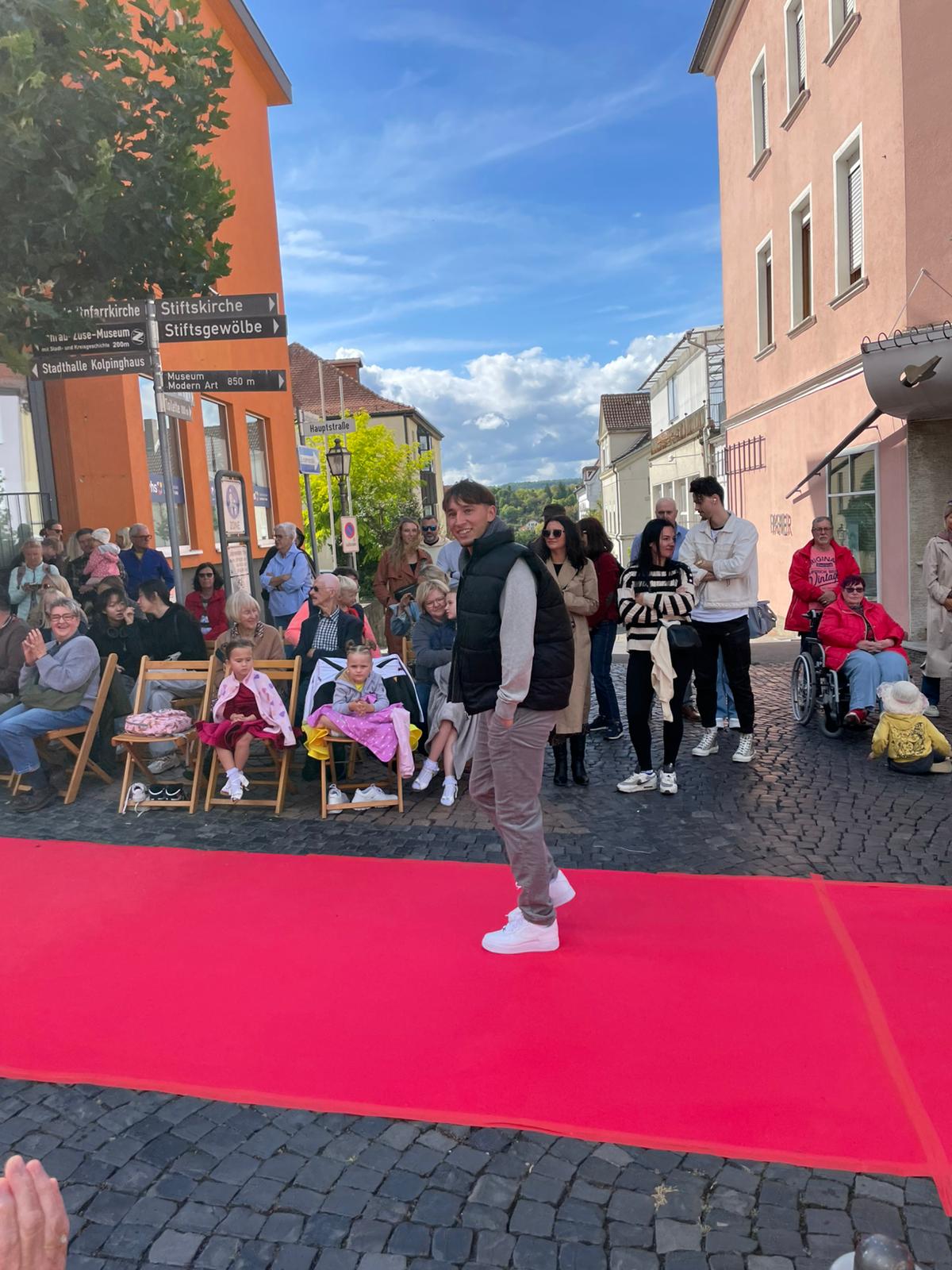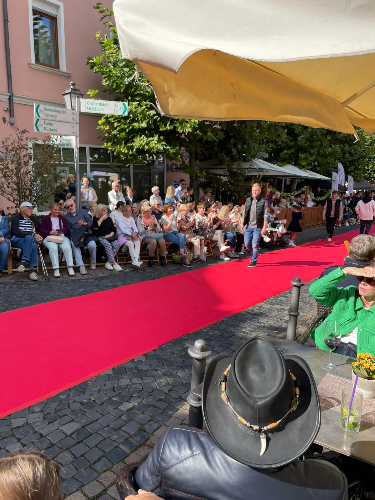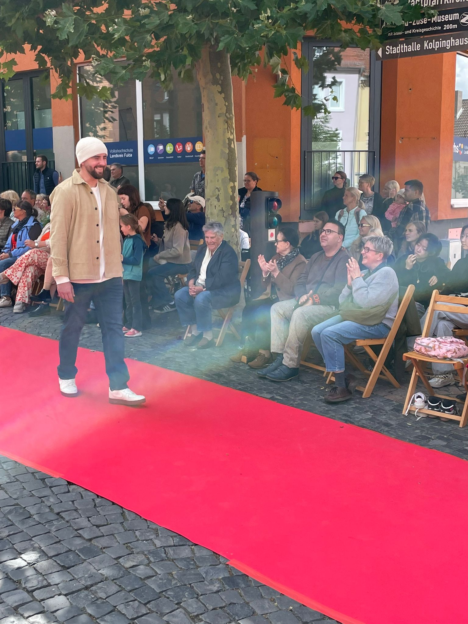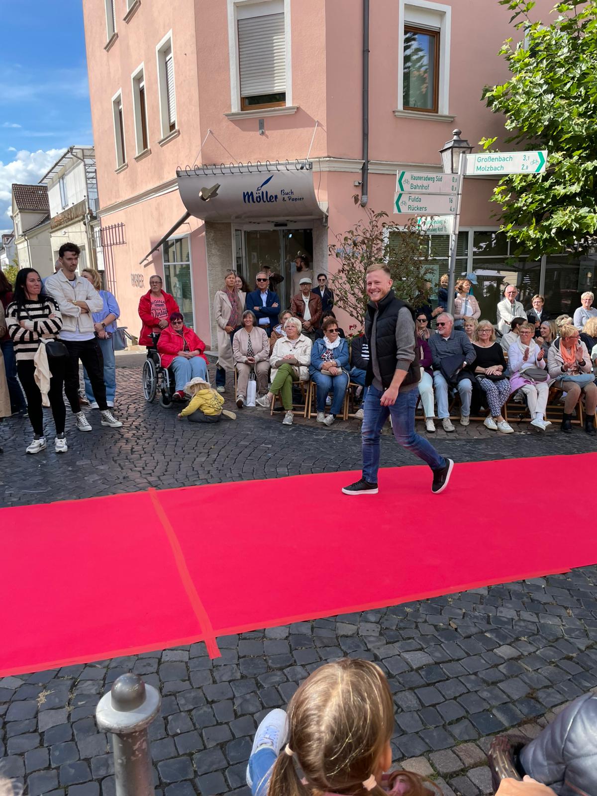 Modenschau in der Innenstadt von Hünfeld -BilderFußball / 13. September 2025 Auch 8 Spieler des Lotto-Hessenligakaders liefen am Samstag als Modells auf dem roten Teppich in der Hünfelder Innenstadt mit.Tolle Outfits von Männersache und Sonnenbrillen von Sedelmayr wurden gekonnt vorgetragen.