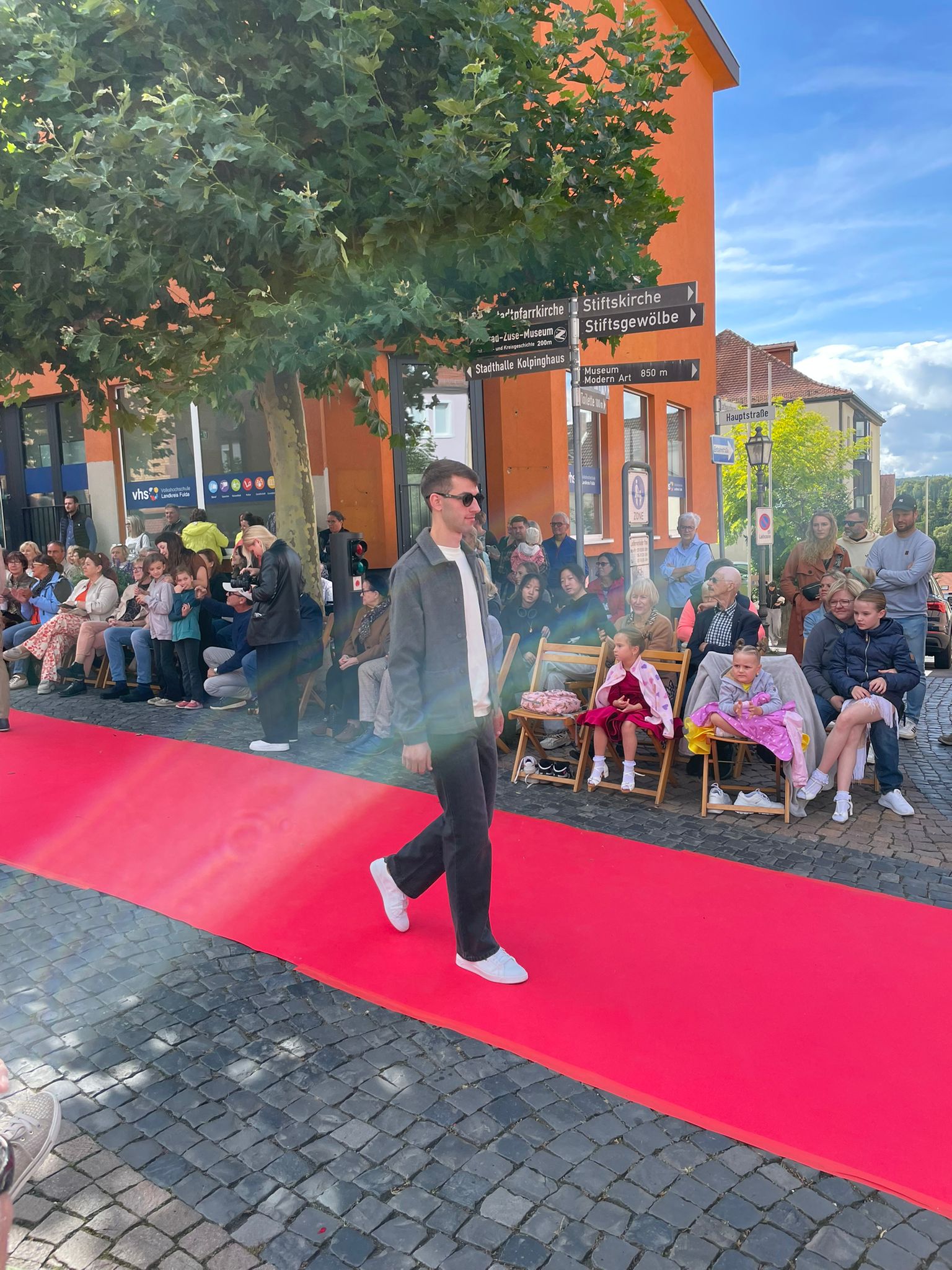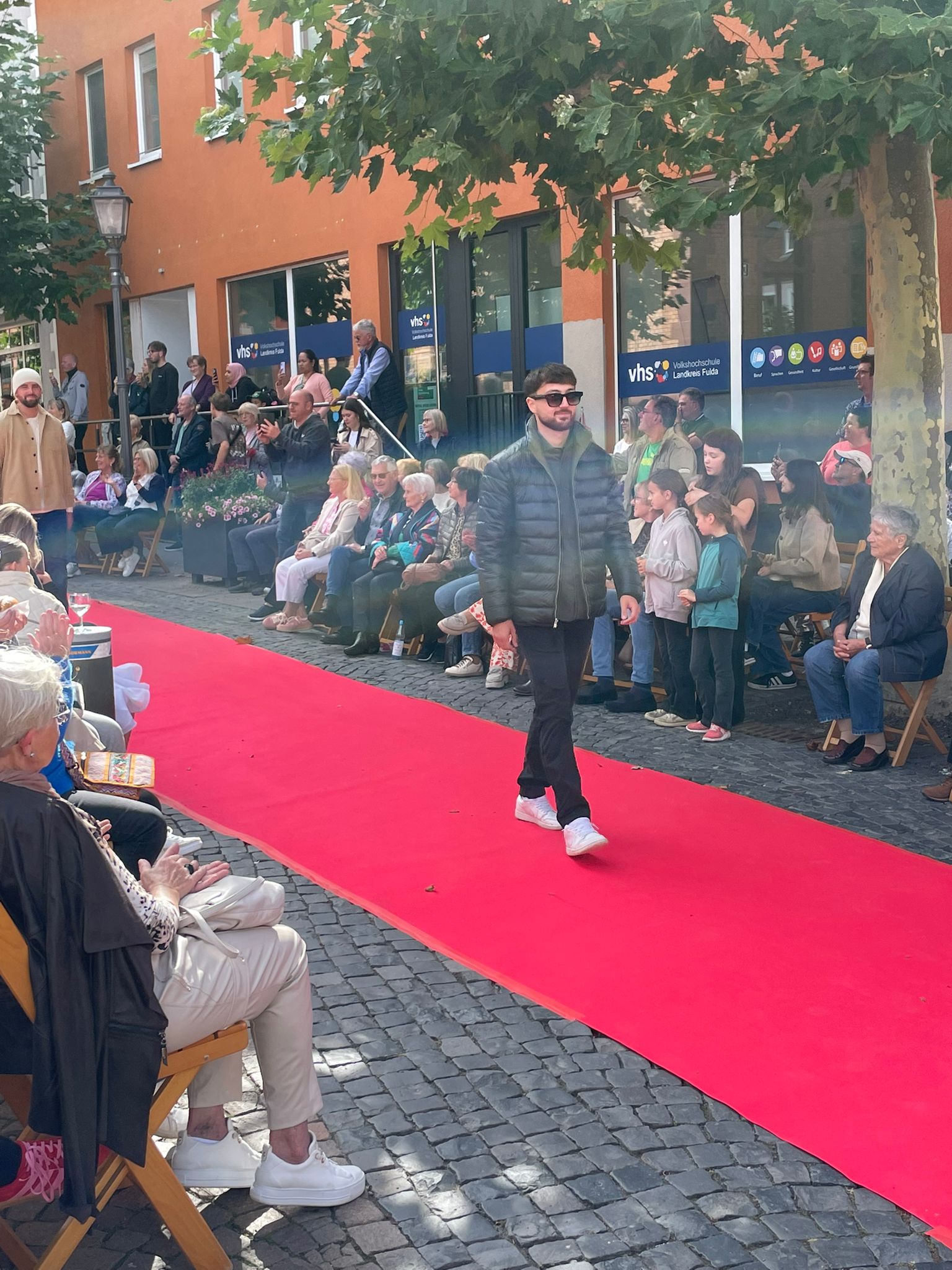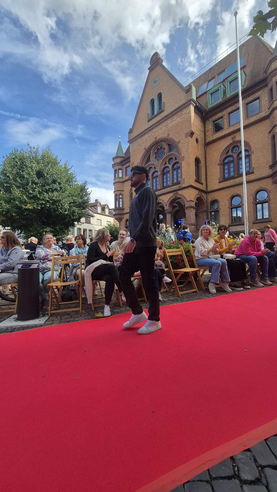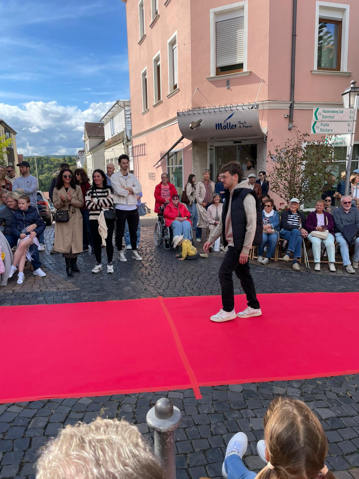 Modenschau in der Innenstadt von Hünfeld -BilderFußball / 13. September 2025 Auch 8 Spieler des Lotto-Hessenligakaders liefen am Samstag als Modells auf dem roten Teppich in der Hünfelder Innenstadt mit.Tolle Outfits von Männersache und Sonnenbrillen von Sedelmayr wurden gekonnt vorgetragen.