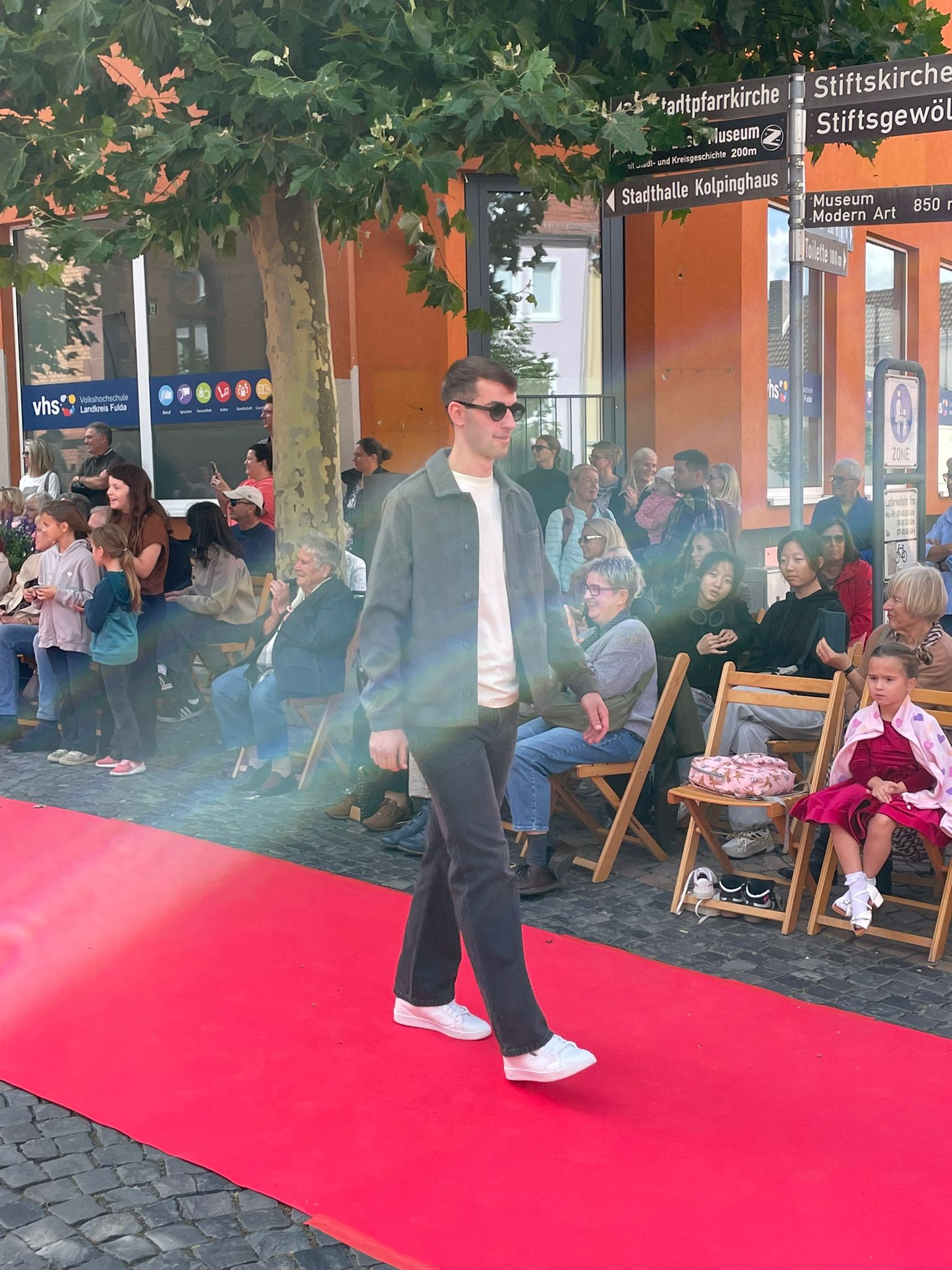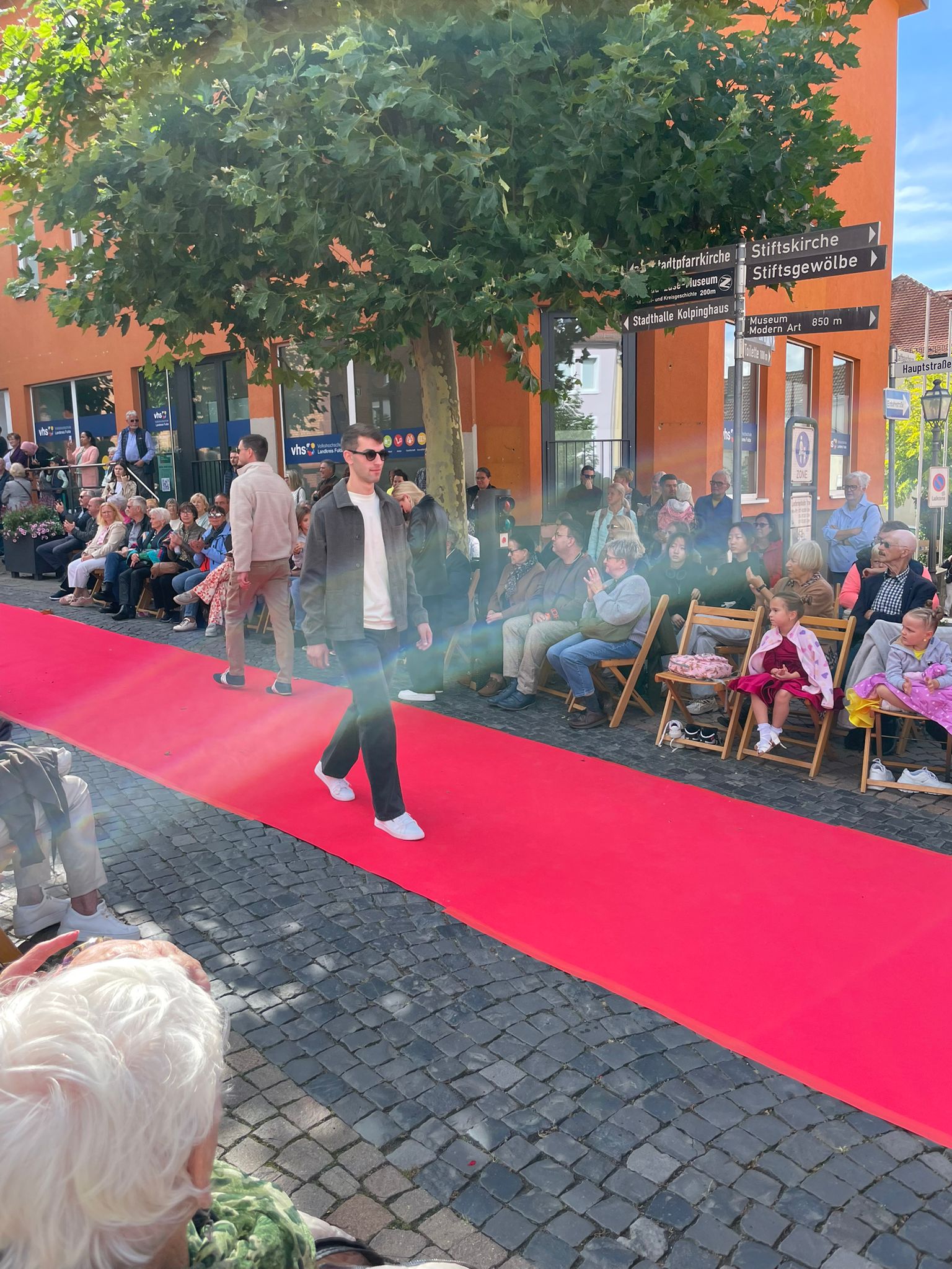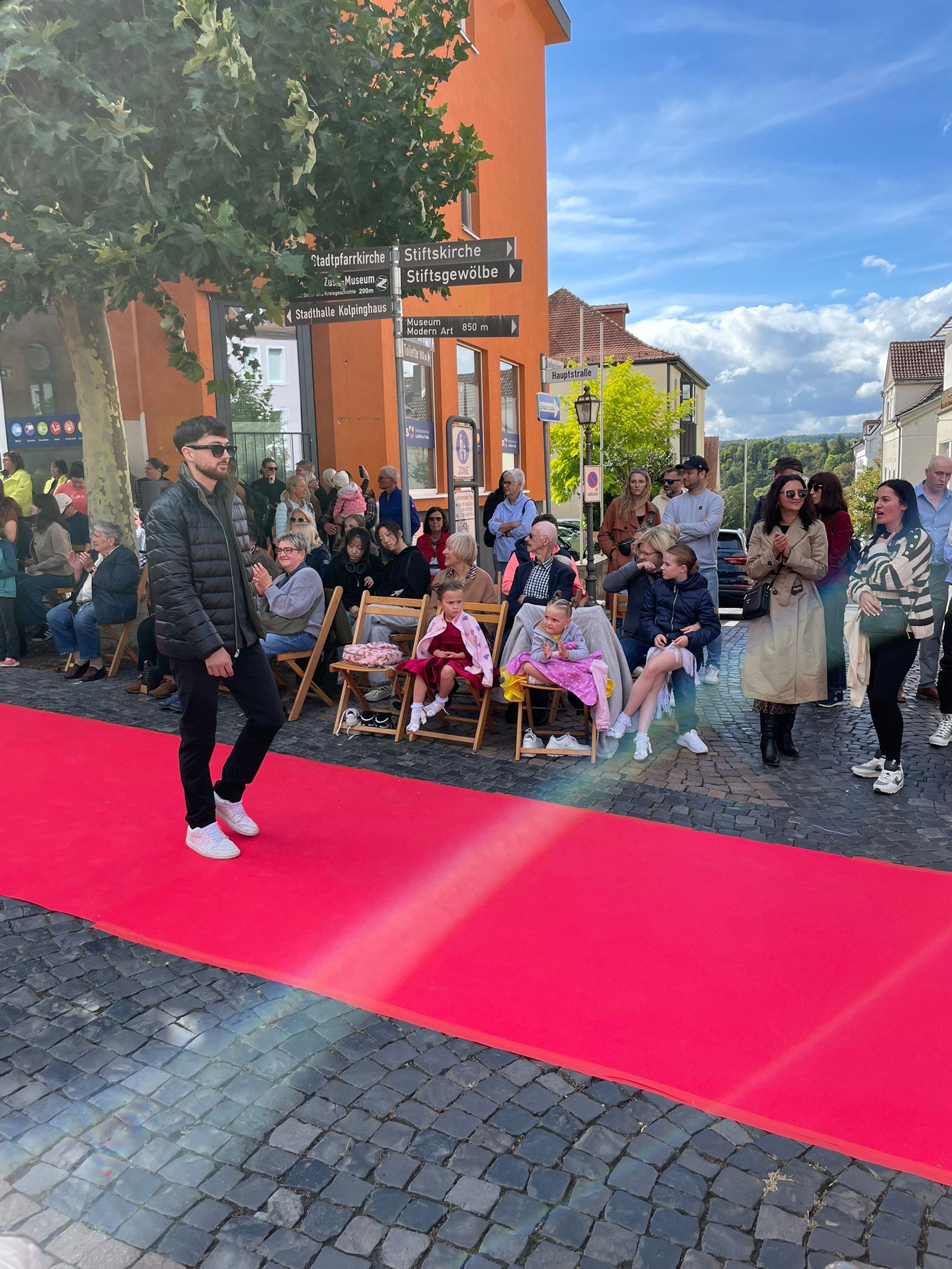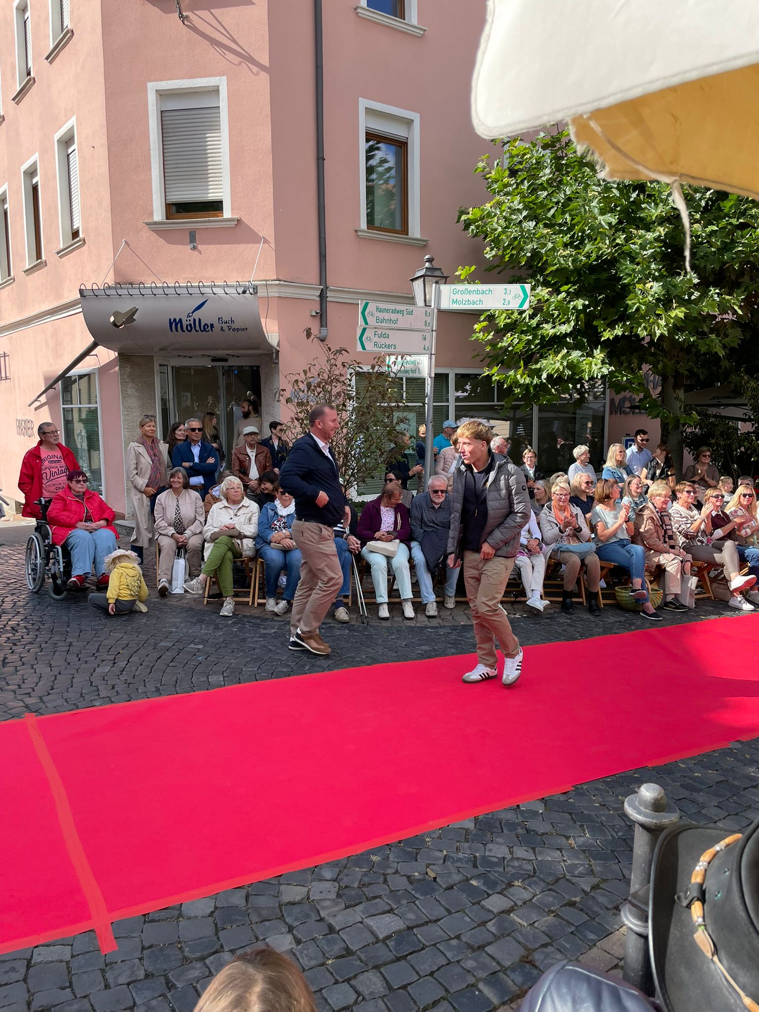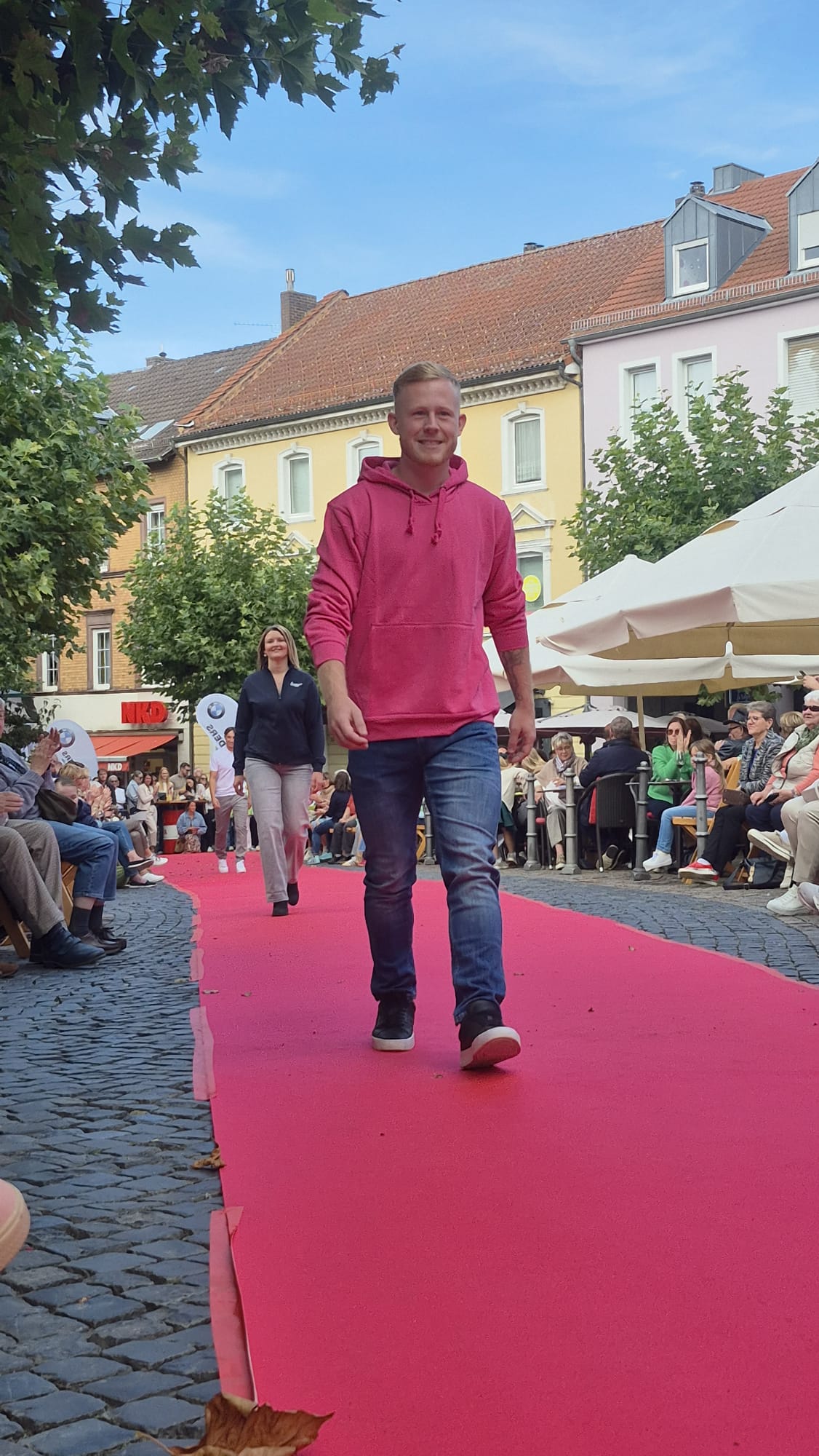 Modenschau in der Innenstadt von Hünfeld -BilderFußball / 13. September 2025 Auch 8 Spieler des Lotto-Hessenligakaders liefen am Samstag als Modells auf dem roten Teppich in der Hünfelder Innenstadt mit.Tolle Outfits von Männersache und Sonnenbrillen von Sedelmayr wurden gekonnt vorgetragen.