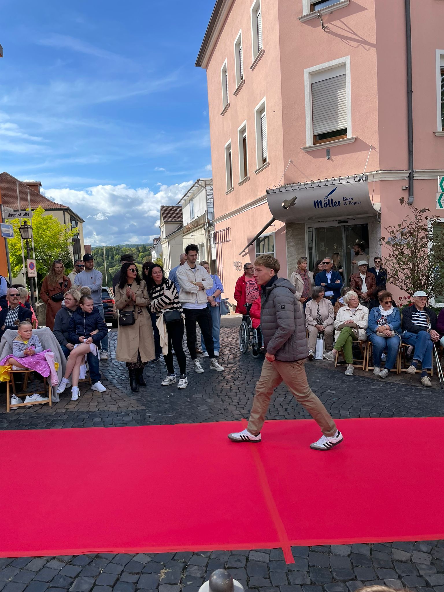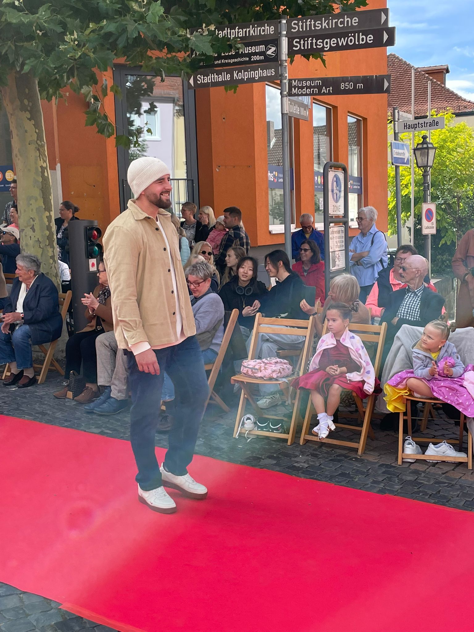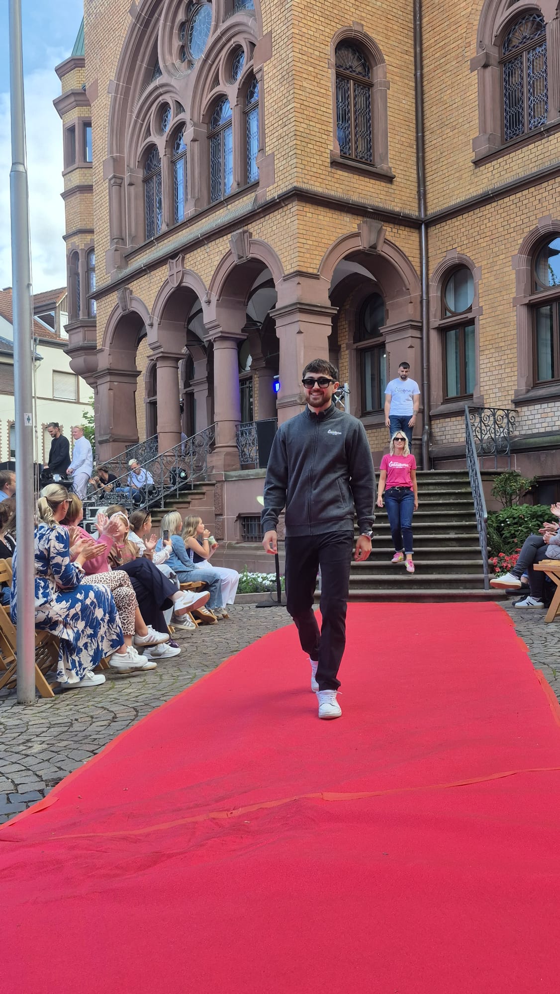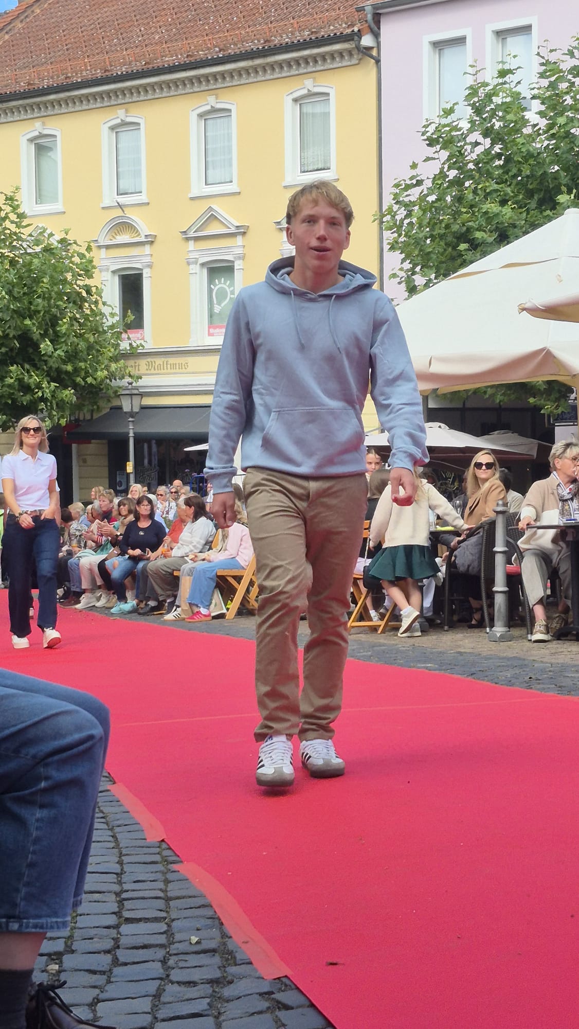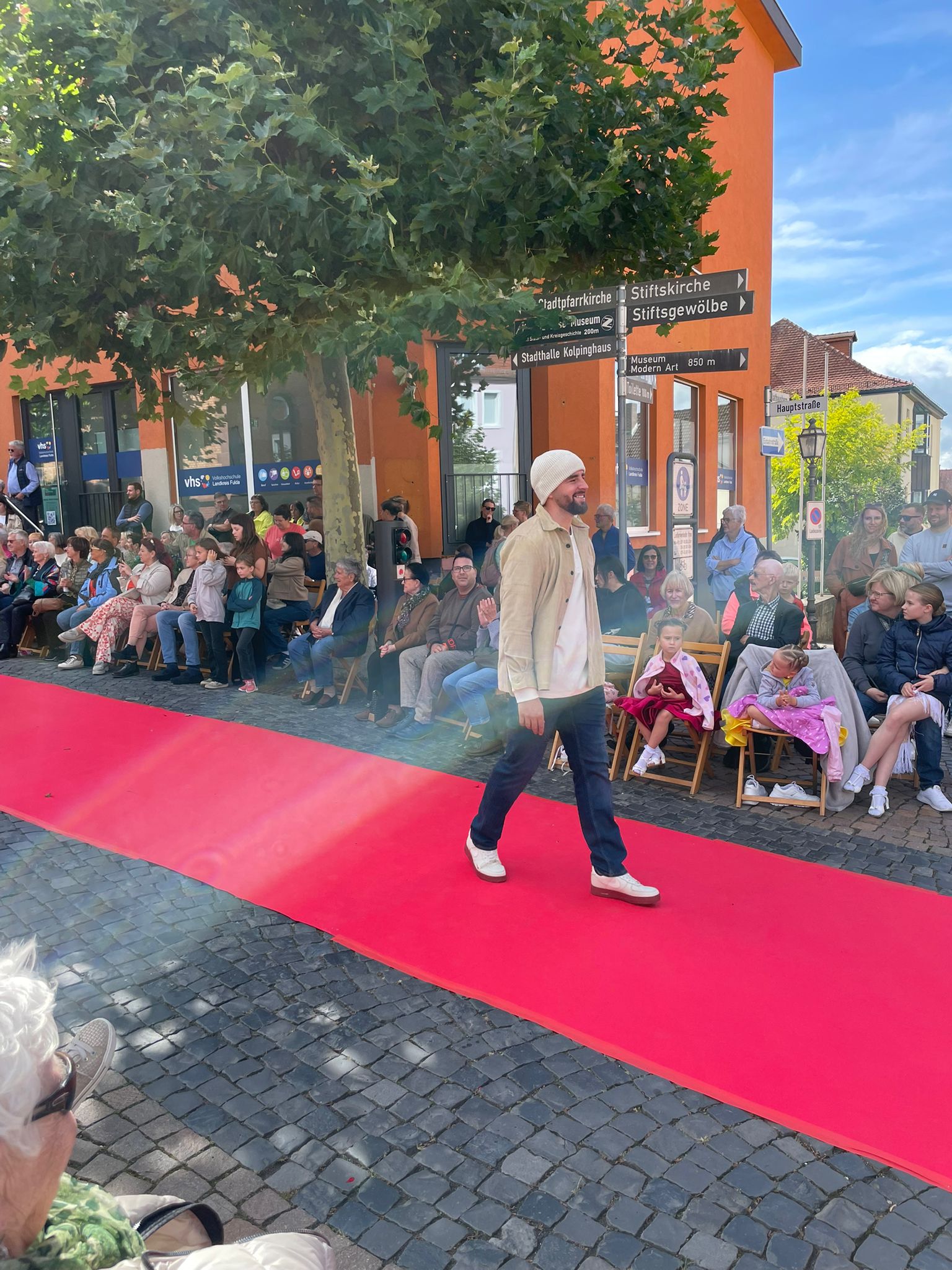 Modenschau in der Innenstadt von Hünfeld -BilderFußball / 13. September 2025 Auch 8 Spieler des Lotto-Hessenligakaders liefen am Samstag als Modells auf dem roten Teppich in der Hünfelder Innenstadt mit.Tolle Outfits von Männersache und Sonnenbrillen von Sedelmayr wurden gekonnt vorgetragen.