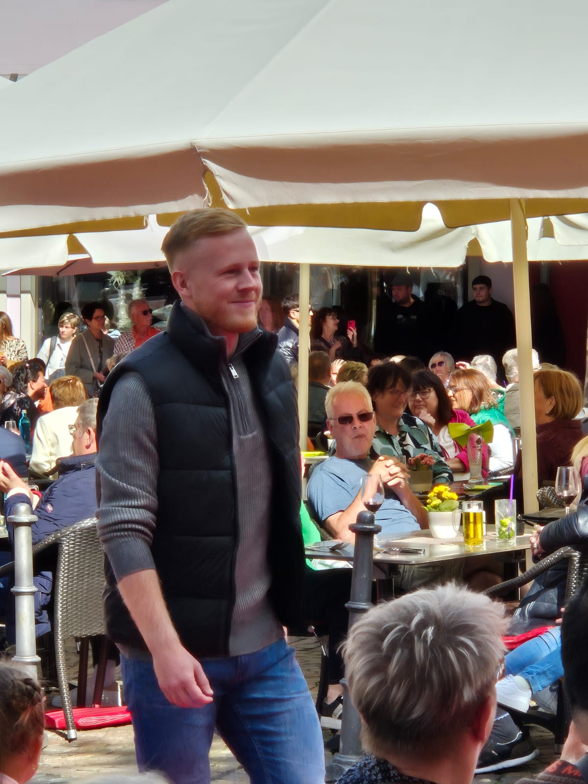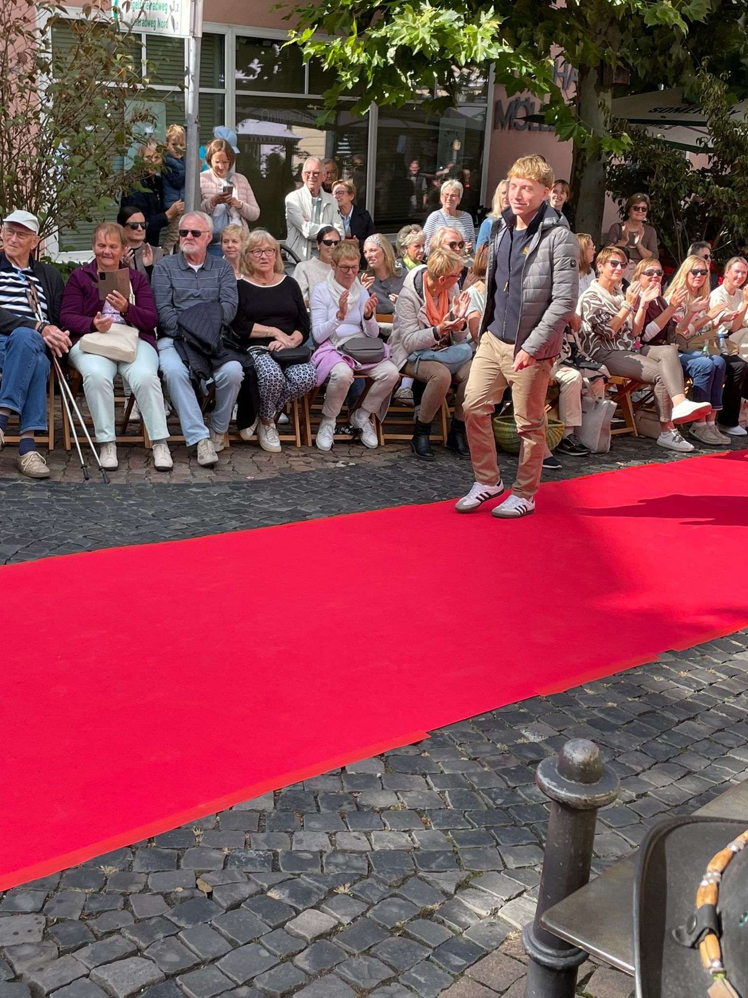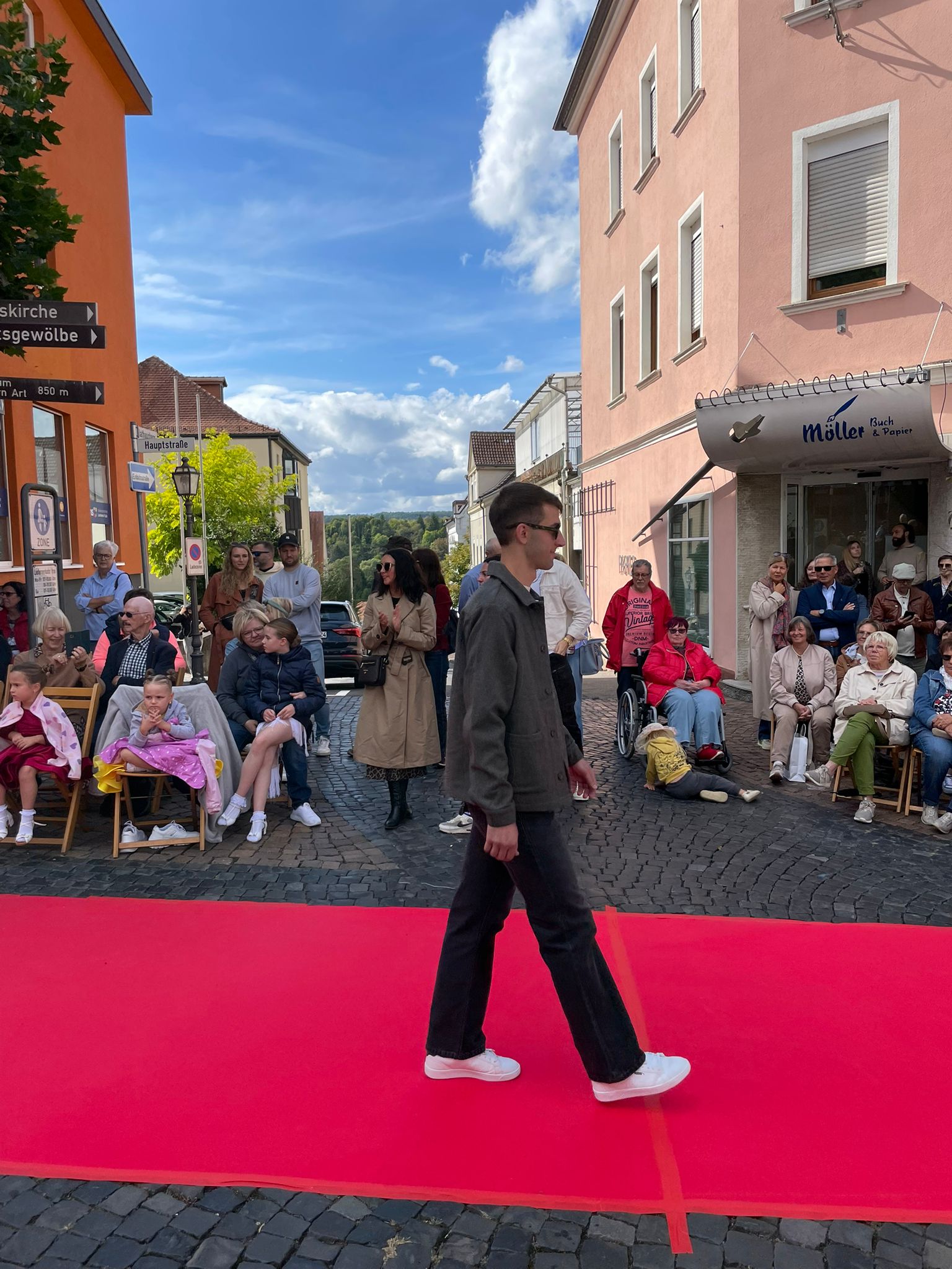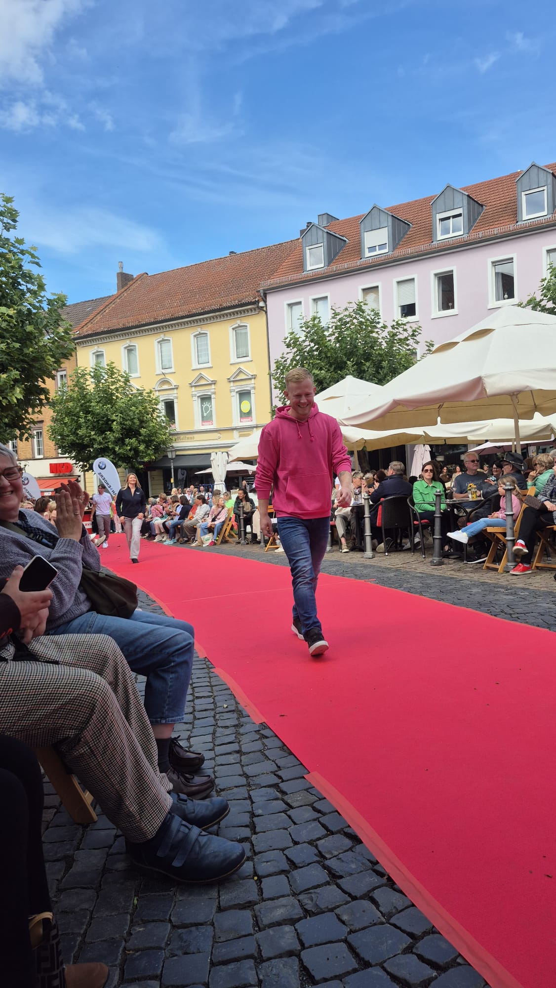 Modenschau in der Innenstadt von Hünfeld -BilderFußball / 13. September 2025 Auch 8 Spieler des Lotto-Hessenligakaders liefen am Samstag als Modells auf dem roten Teppich in der Hünfelder Innenstadt mit.Tolle Outfits von Männersache und Sonnenbrillen von Sedelmayr wurden gekonnt vorgetragen.