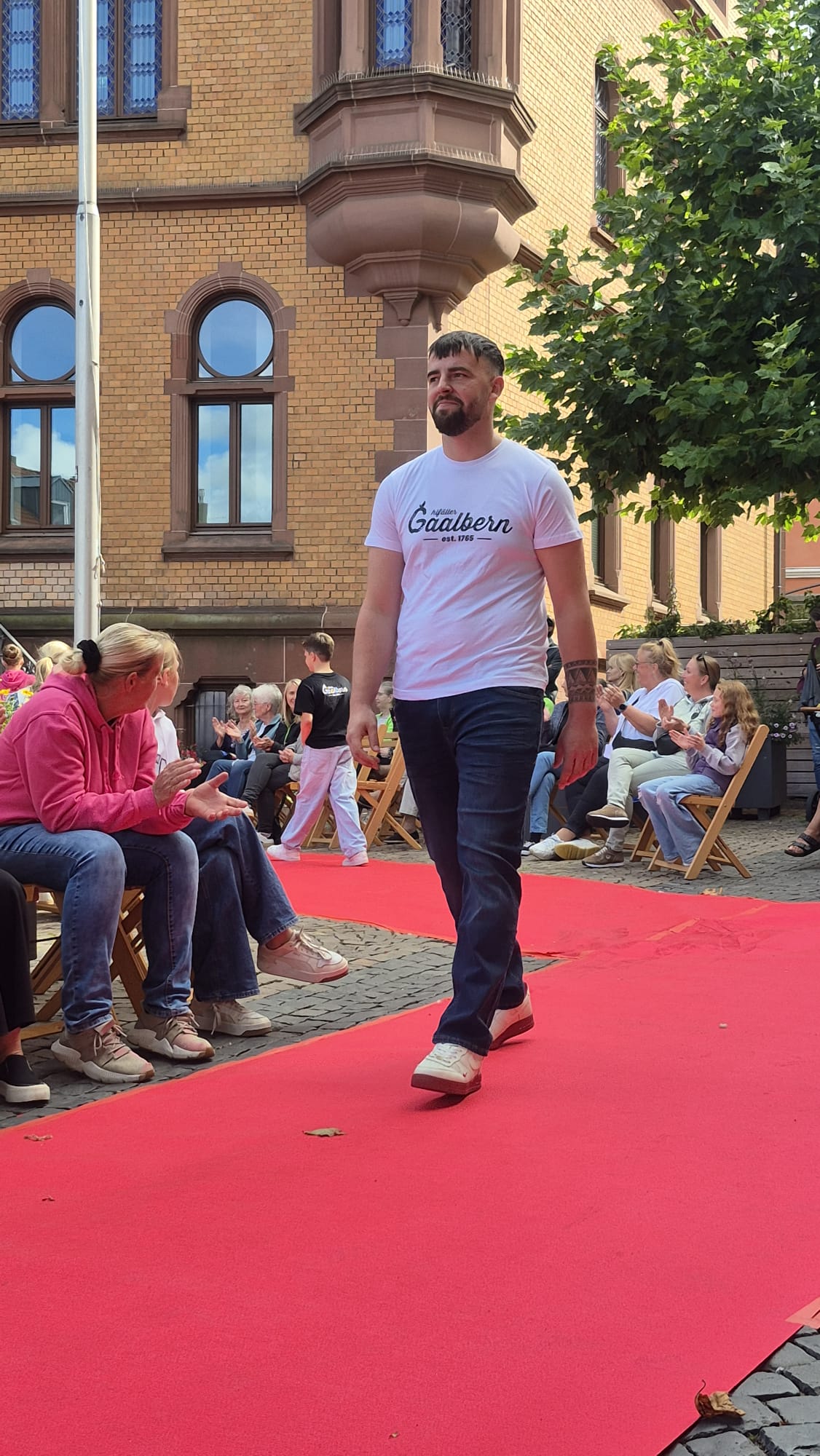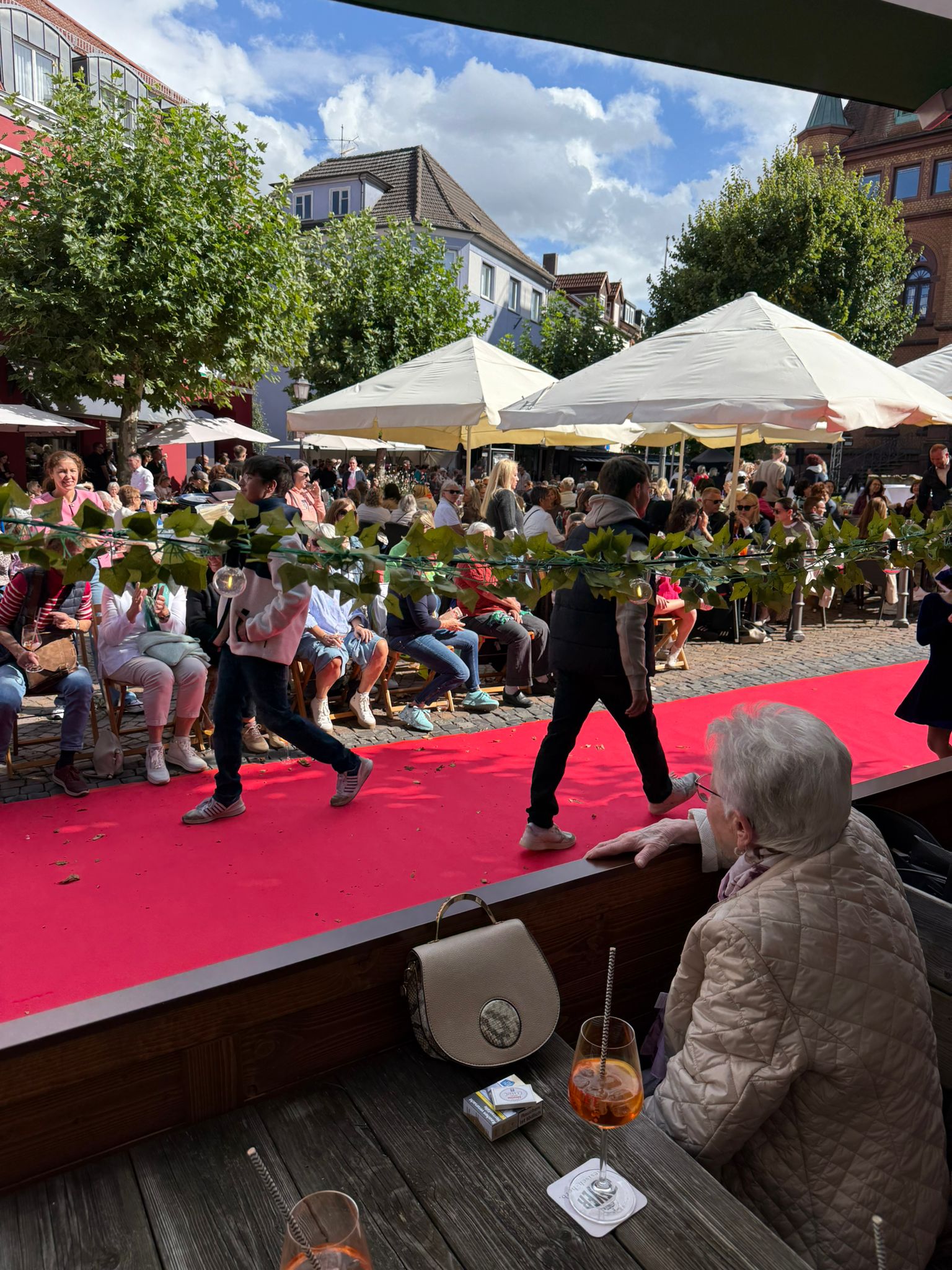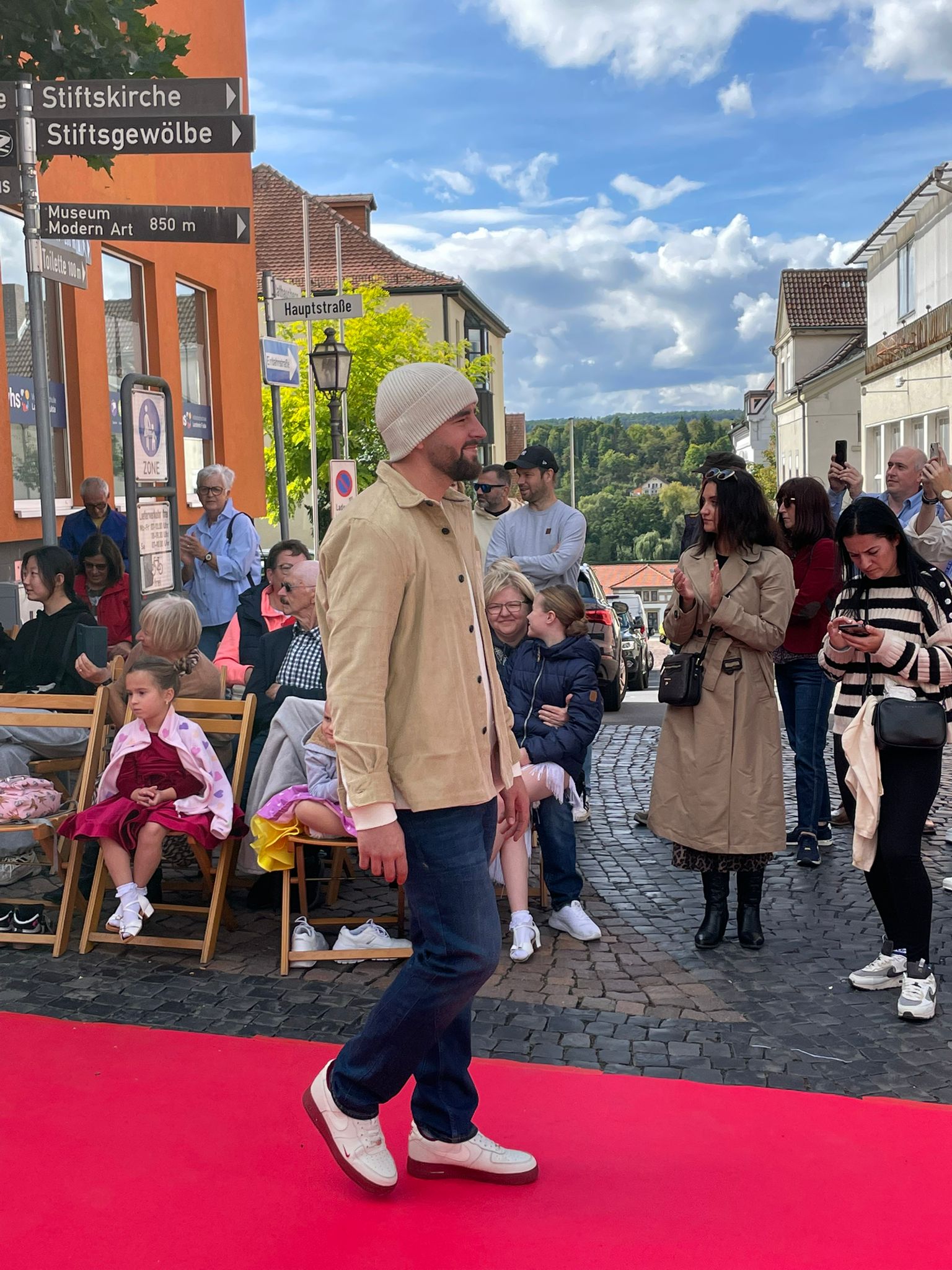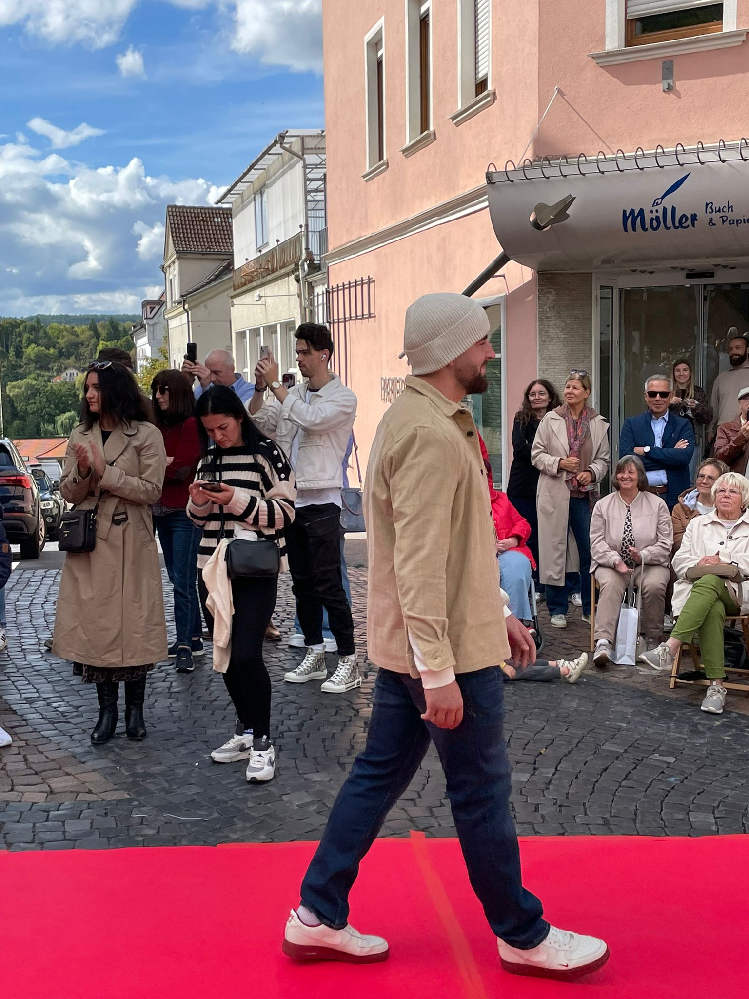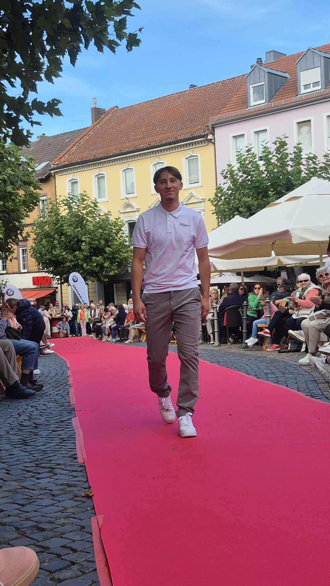 Modenschau in der Innenstadt von Hünfeld -BilderFußball / 13. September 2025 Auch 8 Spieler des Lotto-Hessenligakaders liefen am Samstag als Modells auf dem roten Teppich in der Hünfelder Innenstadt mit.Tolle Outfits von Männersache und Sonnenbrillen von Sedelmayr wurden gekonnt vorgetragen.
