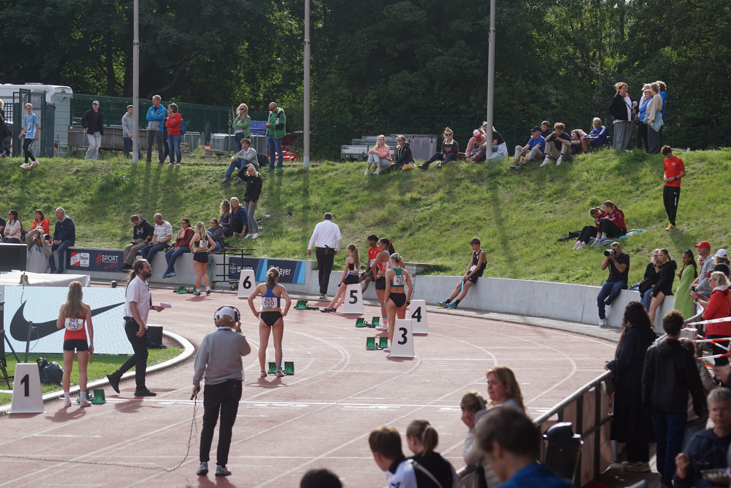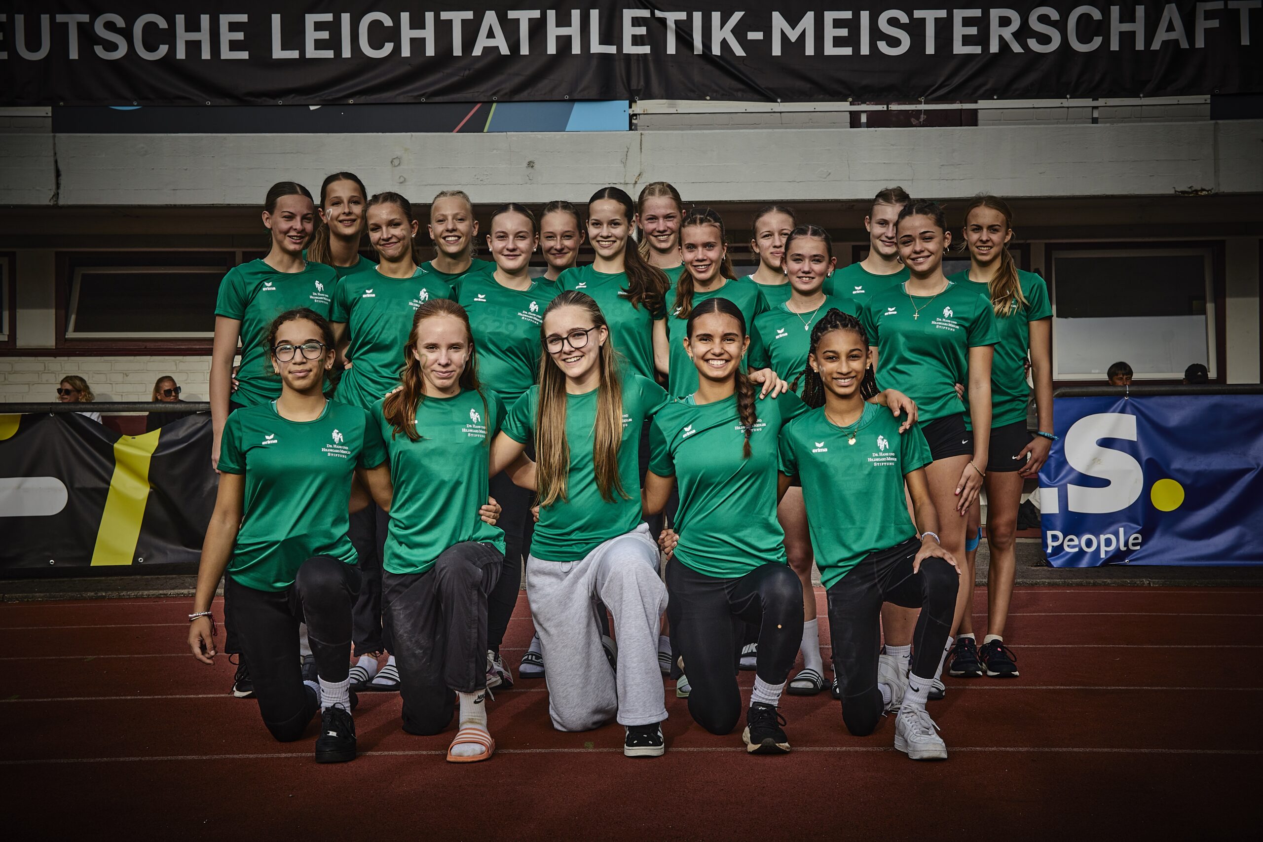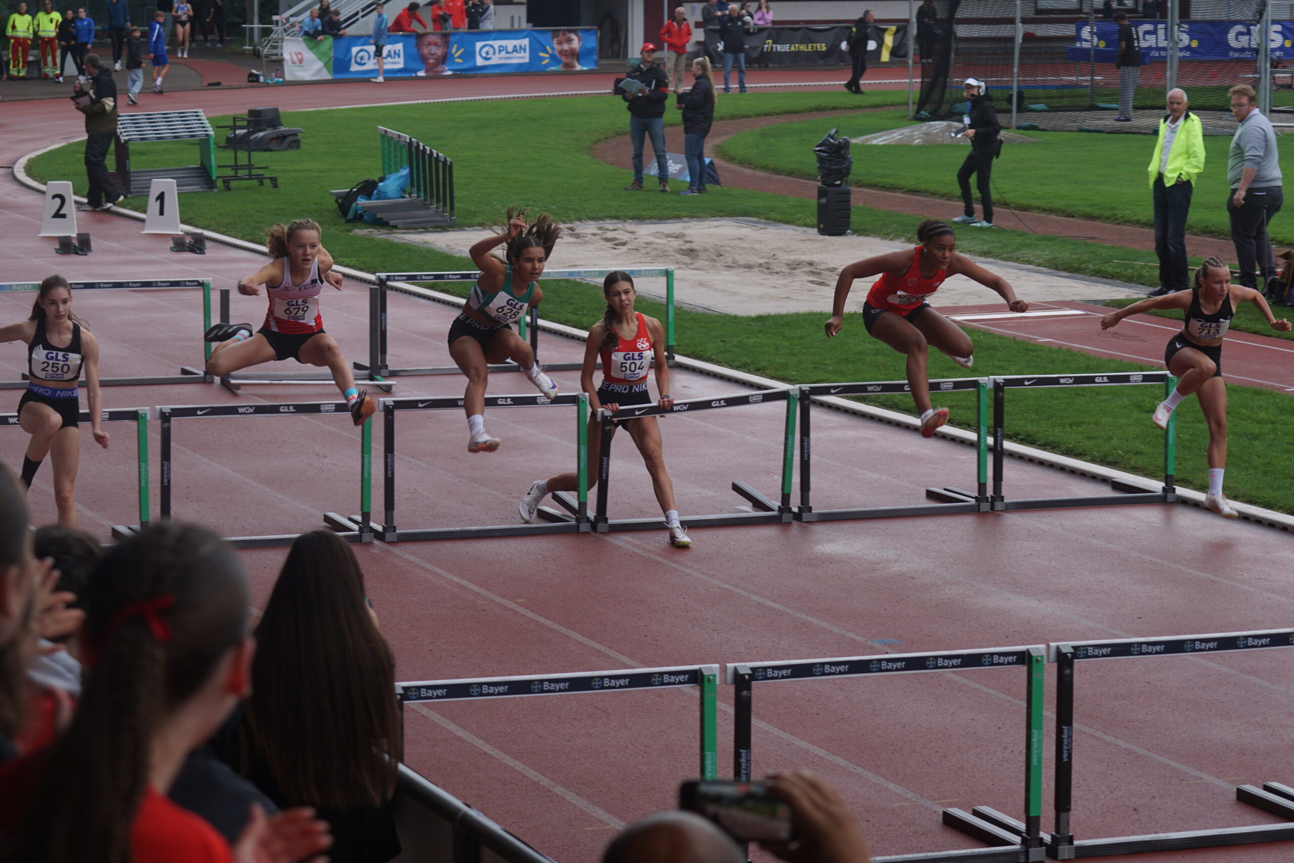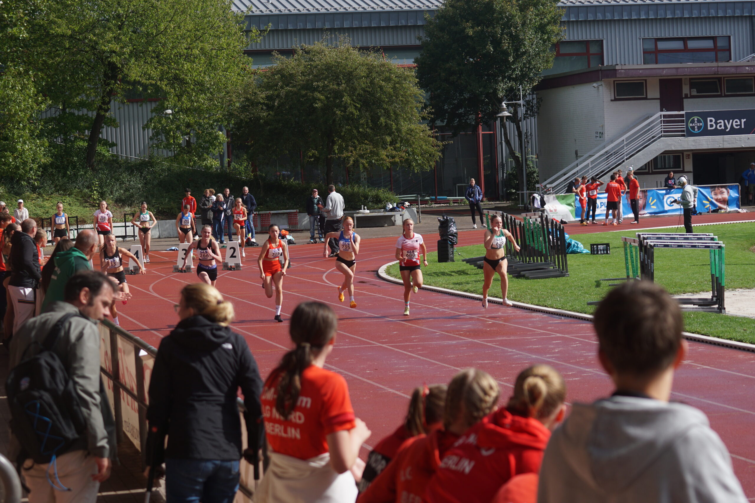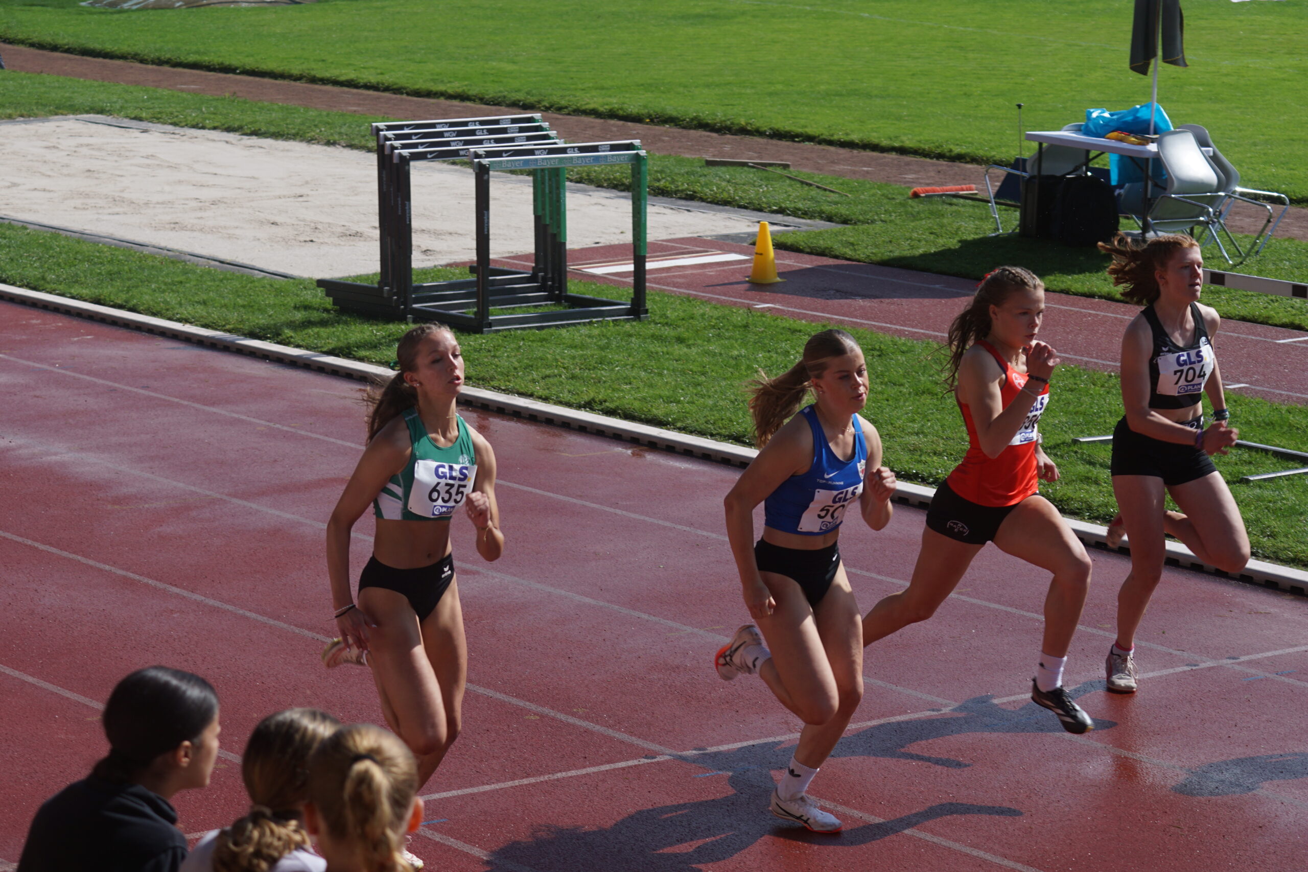 Die abschließende 4x100m-Staffel muss die Entscheidung bringen. Der Startschuss fällt. Die erste Staffel in der Besetzung Nika Marie Henkel, Lotte Schwarz, Svea Witzel und Emma Röhrdanz mit Platz 2; die zweite Staffel in der Besetzung Malia Bohl, Frieda Auerbach, Lotta Roth und Lawen Maiello auf Platz 9.