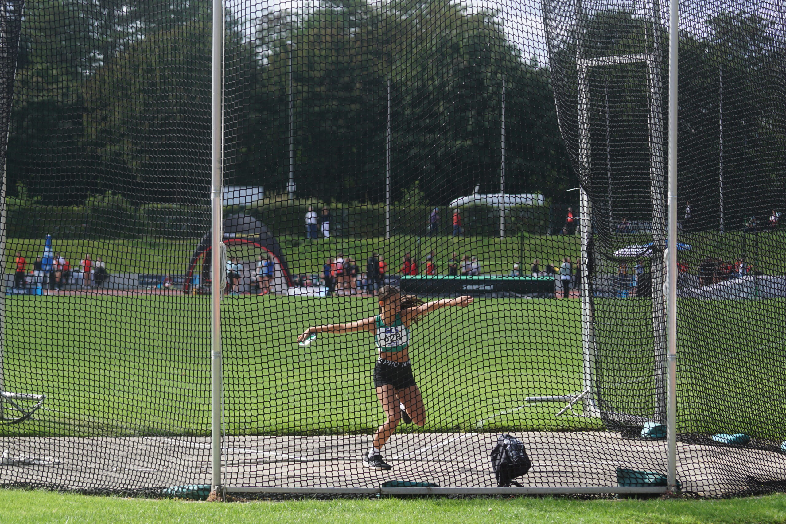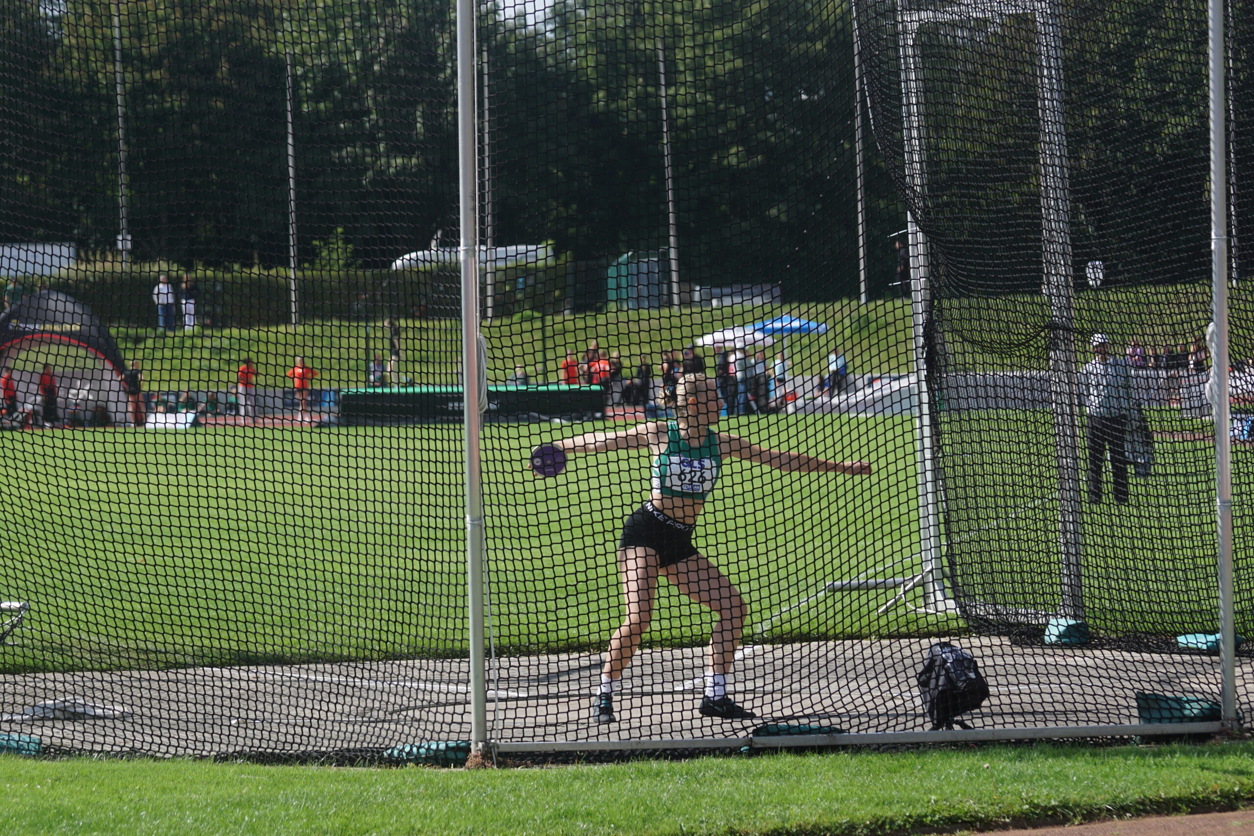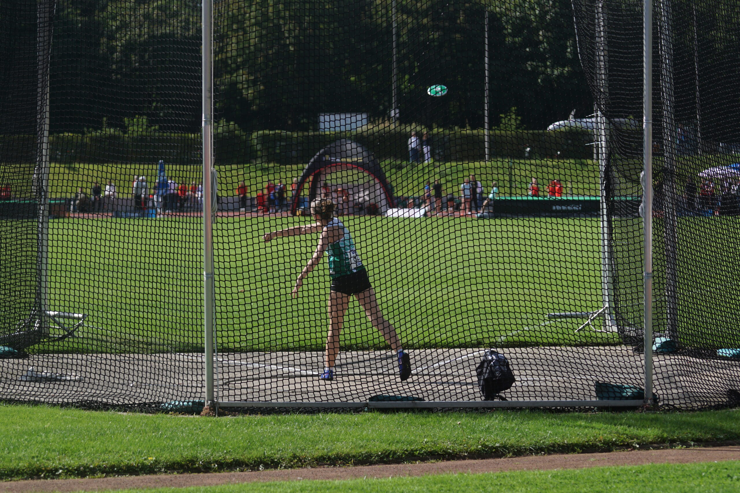 Als nächstes wird der Diskuswurf fertig, eigentlich der Hochsprung, aber der Zeitplan ist, wie auch im letzten Jahr, etwas durcheinandergeraten! Lena Dehler, Marielle Beckmann und Mara Gutermuth auf den Plätzen 4, 12 und 15. In der Gesamtwertung wir weiter auf Platz 4! Lena und Mara mit neuen Bestleistungen, 29,05m bzw. 24,50m