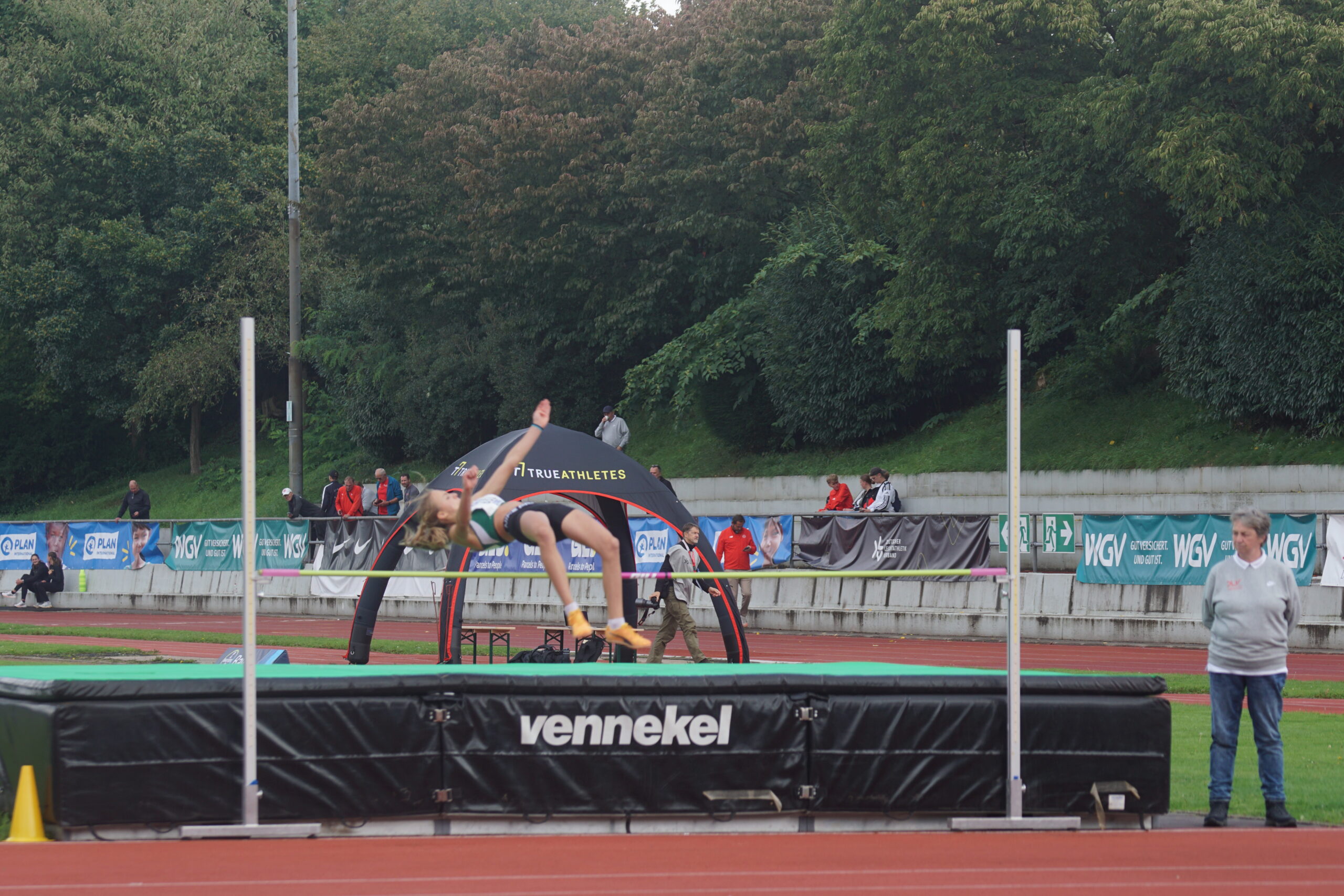Nun der Hochsprung. Amelie Witzel, Emma Röhrdanz und Lia Maja Laudt mit den Plätzen 2, 8 und 13. Emma und Lia aber mit der gleichen Höhe und der gleichen Punktzahl, den Platzierungsunterschied machen die Fehlversuche aus. In der Gesamtwertung nun auf Platz 3. Amelie wieder auf ihrer Bestleistungshöhe von 1,65m.