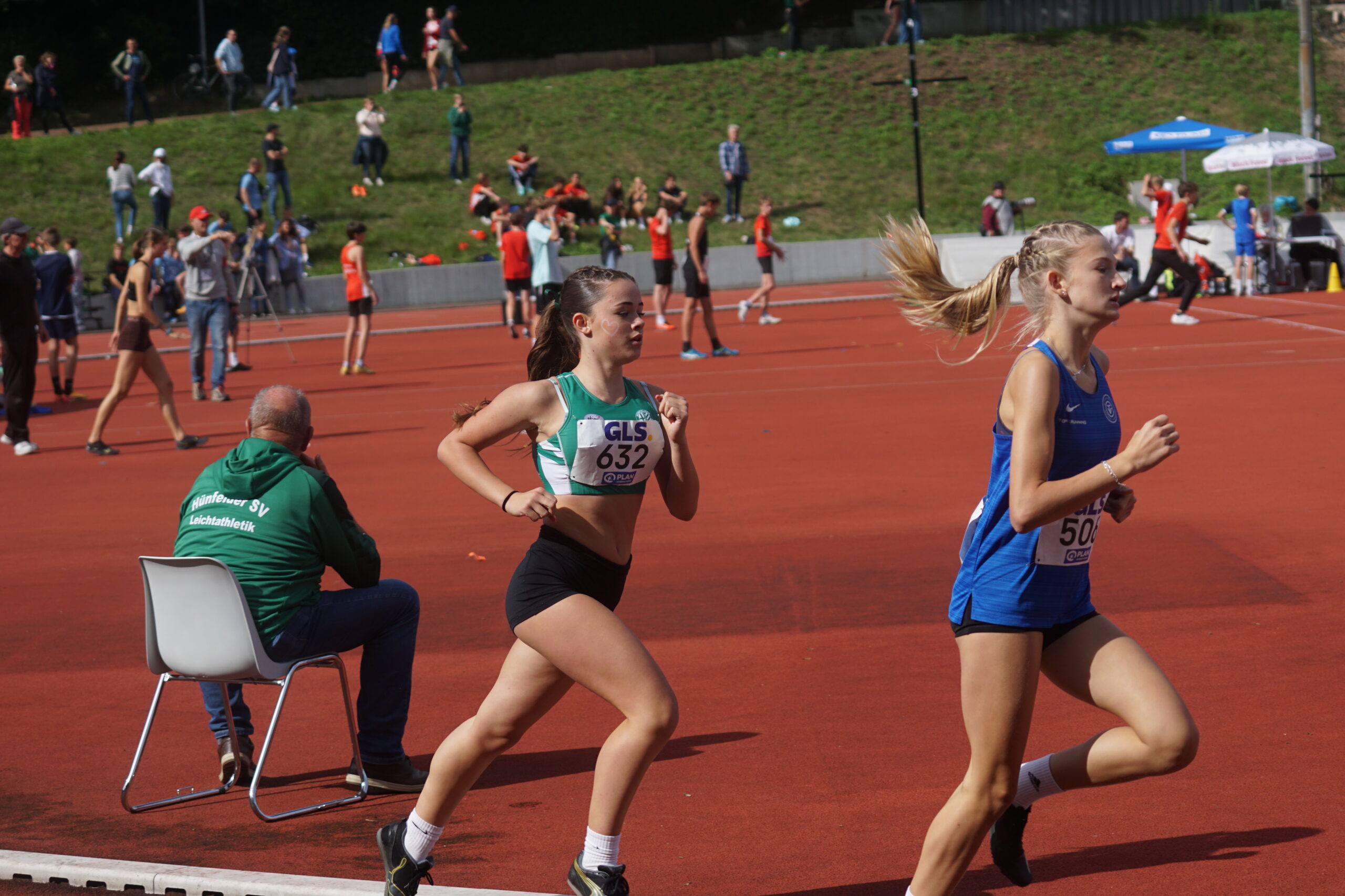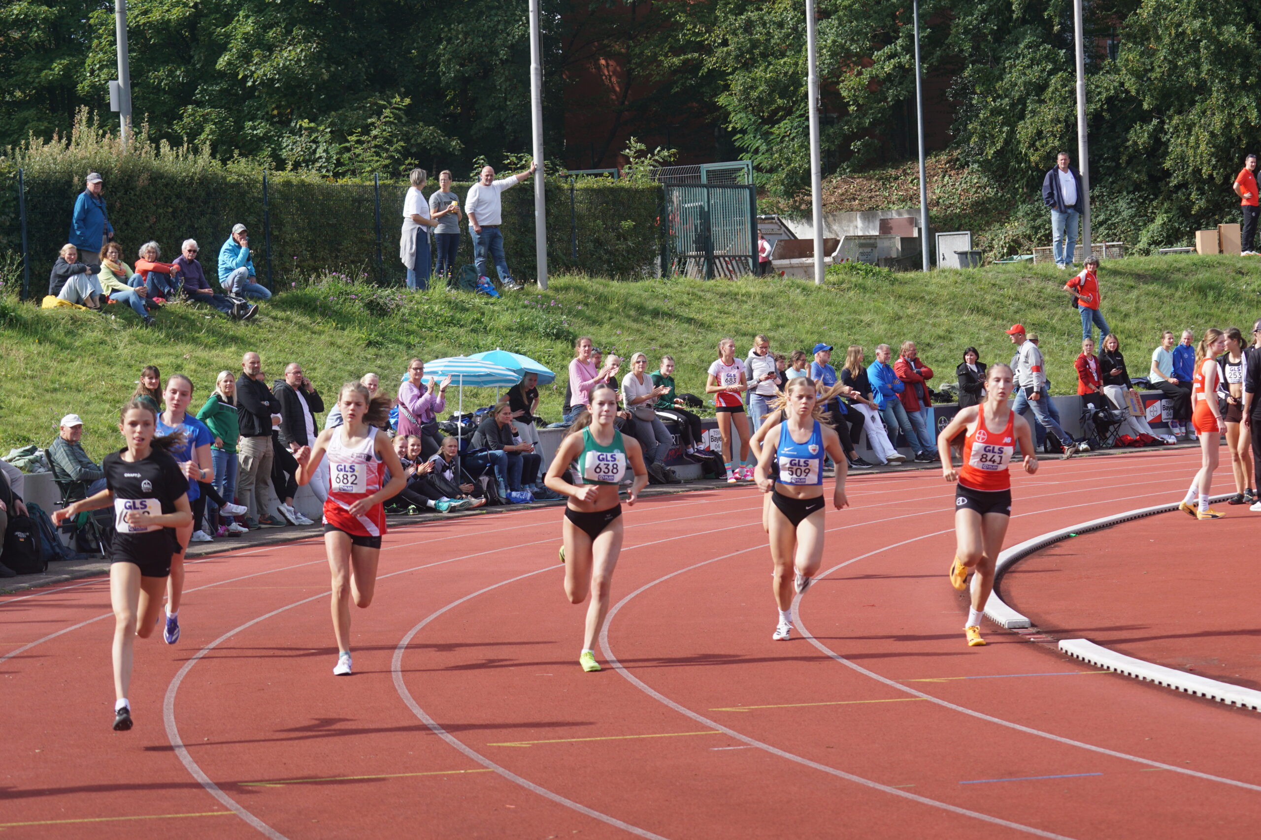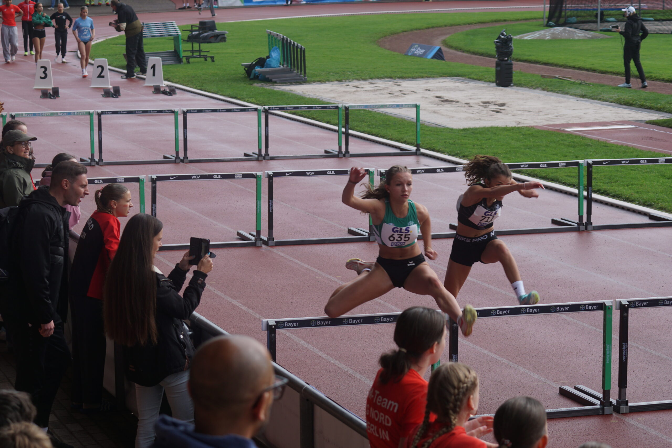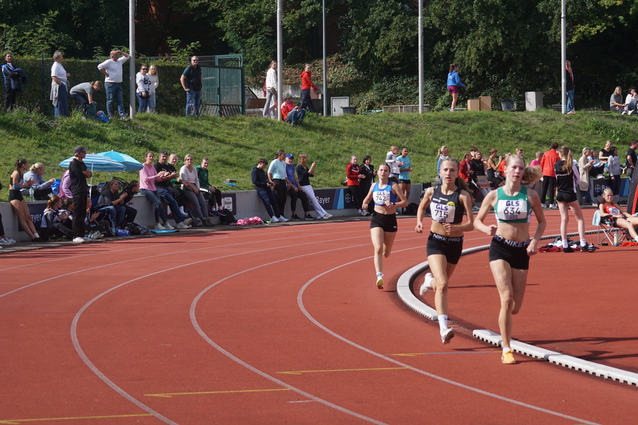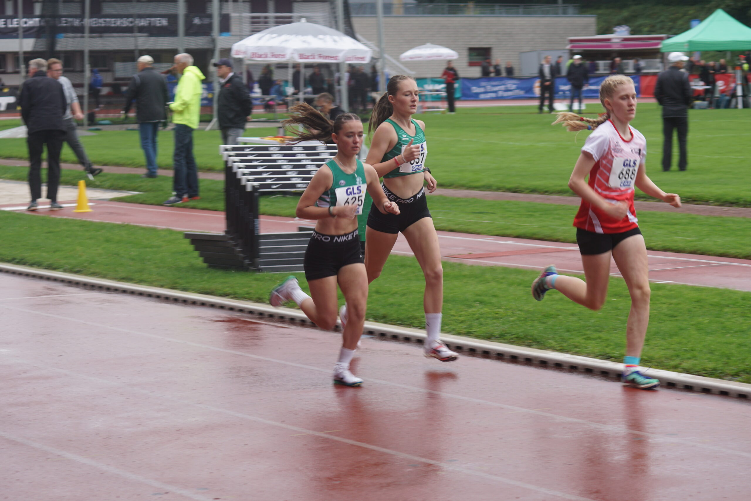 Jetzt die 800m mit Thea Marquart, Lotte Schwarz und Emma Lotz und den Plätzen 8, 11 und 19. Wir nun ganz knapp auf Platz 2. Es ist aber klar, dass wir den 2. Platz nicht halten können; Platz 3 liegt im Bereich des Möglichen!