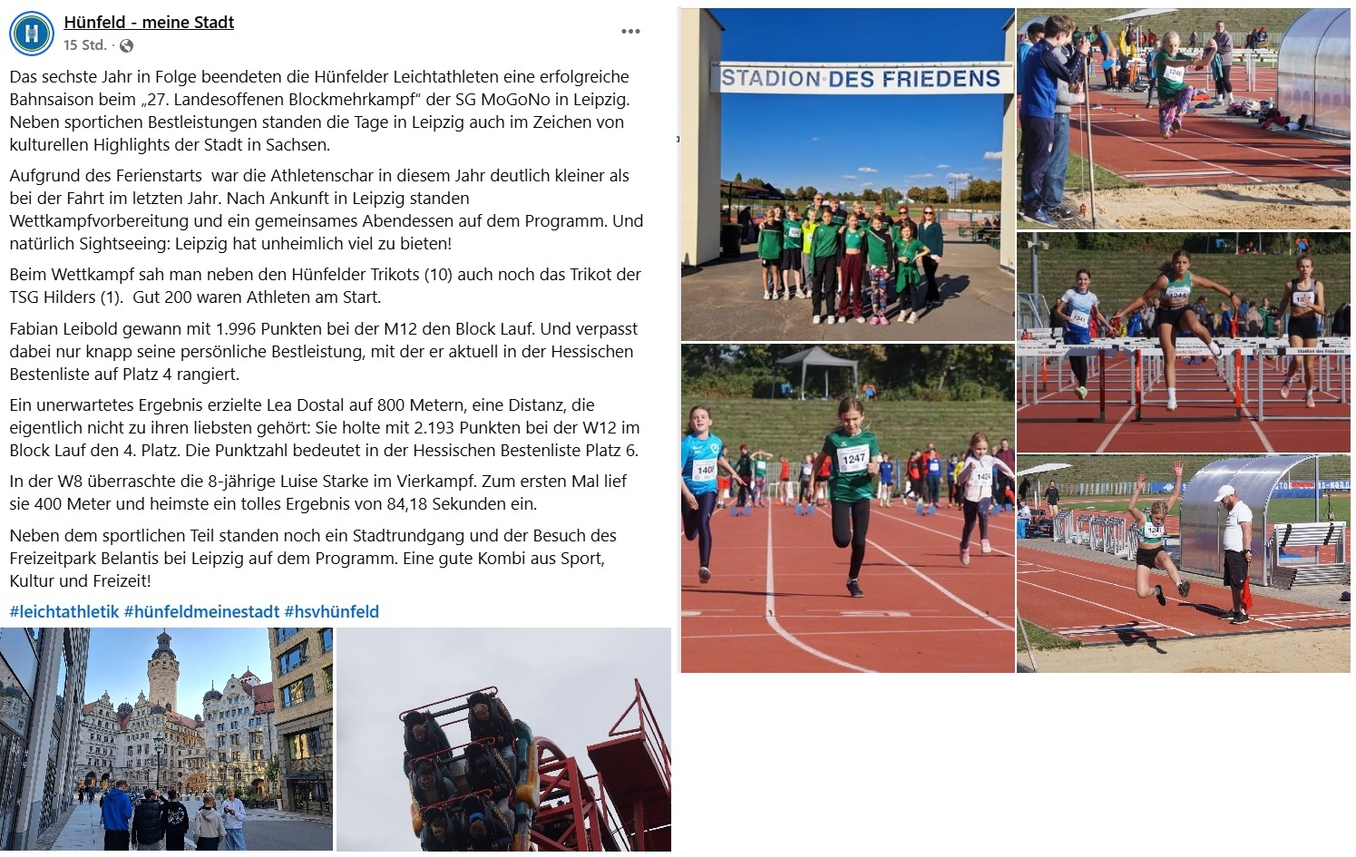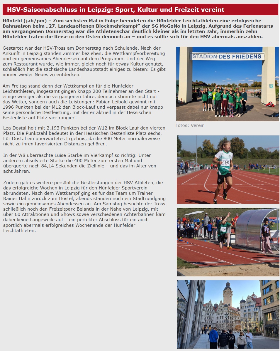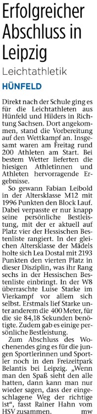 Das sechste Jahr in Folge beendeten die Hünfelder Leichtathleten eine erfolgreiche Bahnsaison beim „27. Landesoffenen Blockmehrkampf“ der SG MoGoNo in Leipzig.