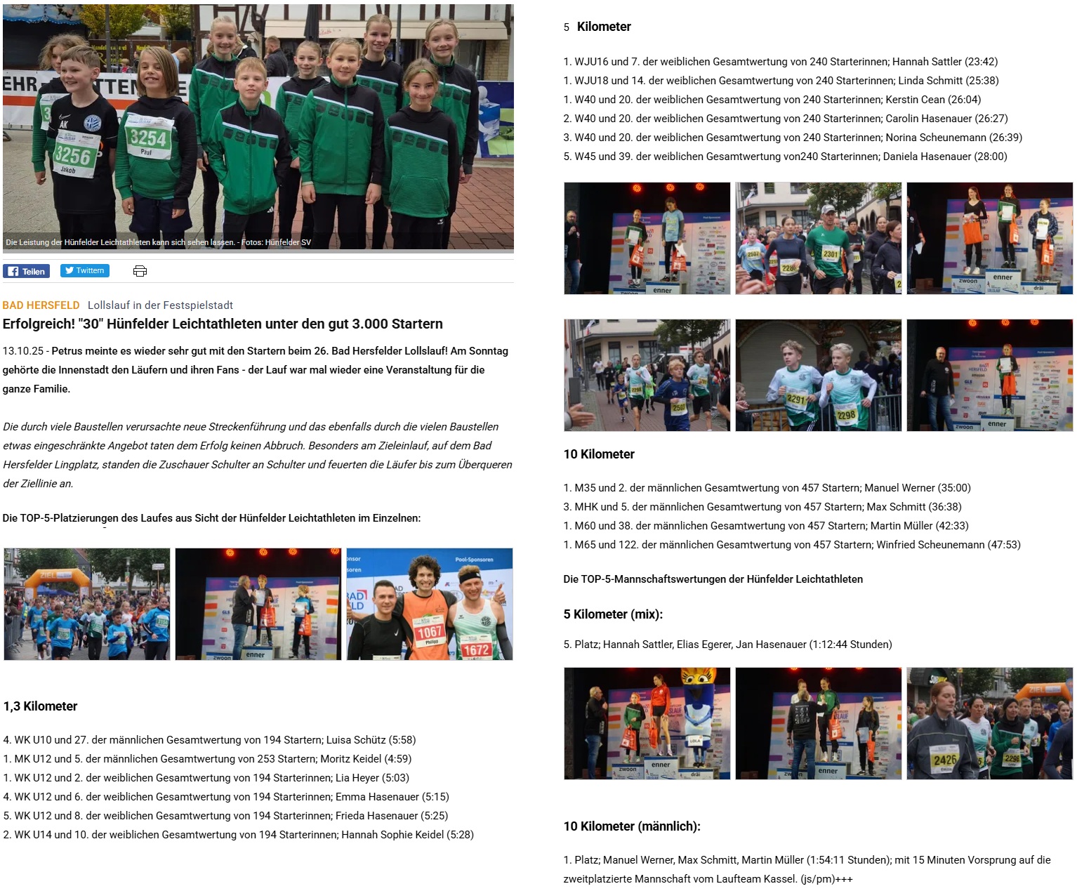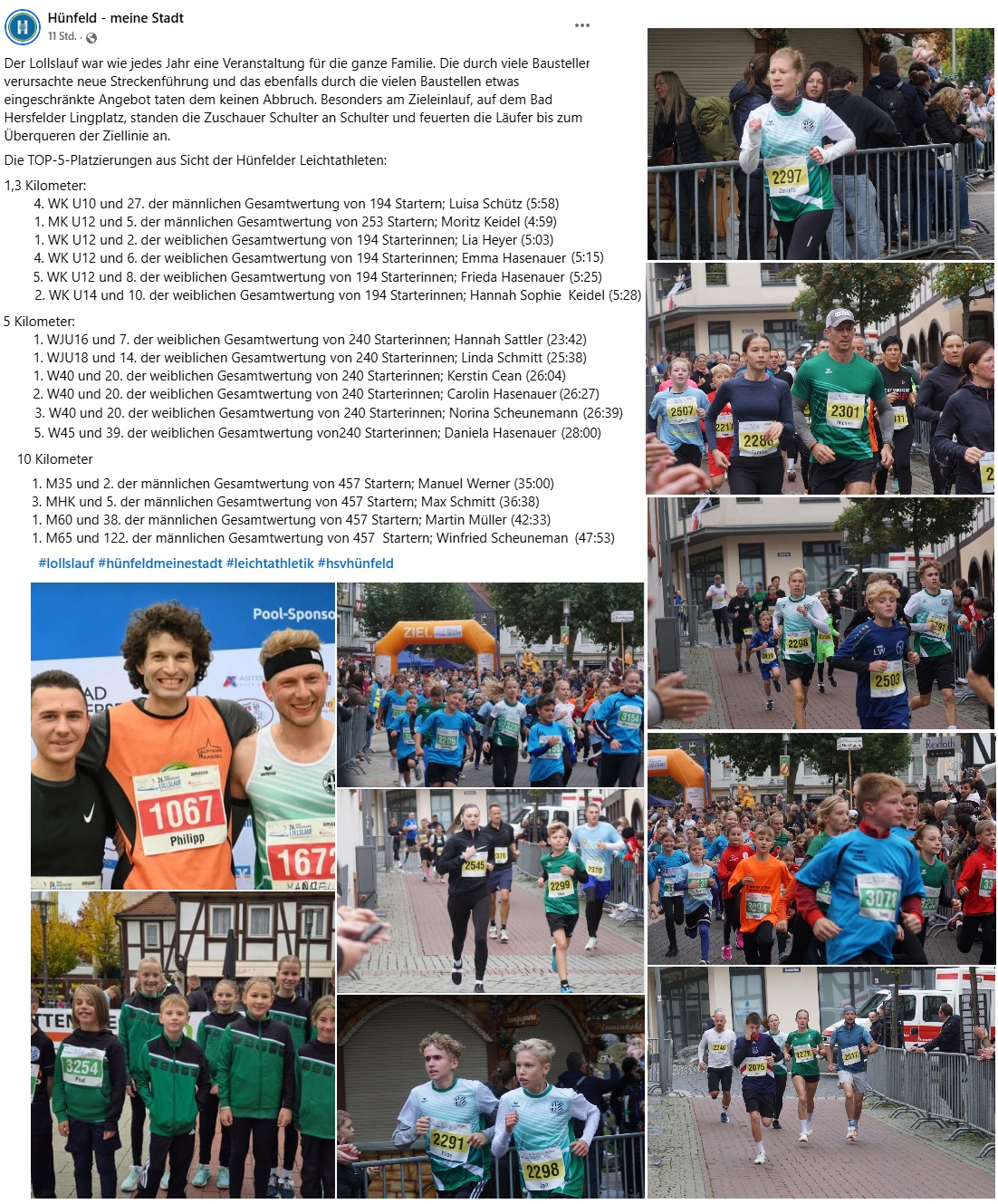 „30“ Hünfelder Leichtathleten unter den gut 3.000 Startern beim 26. Bad Hersfelder Lollslauf – viele TOP-Platzierungen