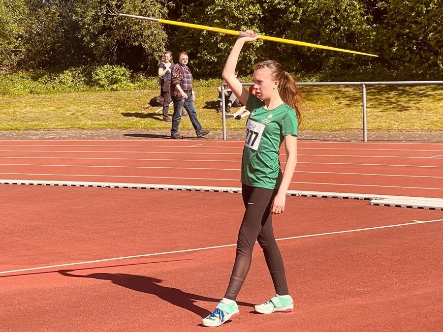 Emilie Auerbach wiederum präsentierte sich stark. In ihrem ersten Speerwettkampf kam sie auf eine Weite von 26,14 Meter. Die Weite bedeutet in ihrer Altersklasse einen Platz unter den TOP-10 in Hessen.