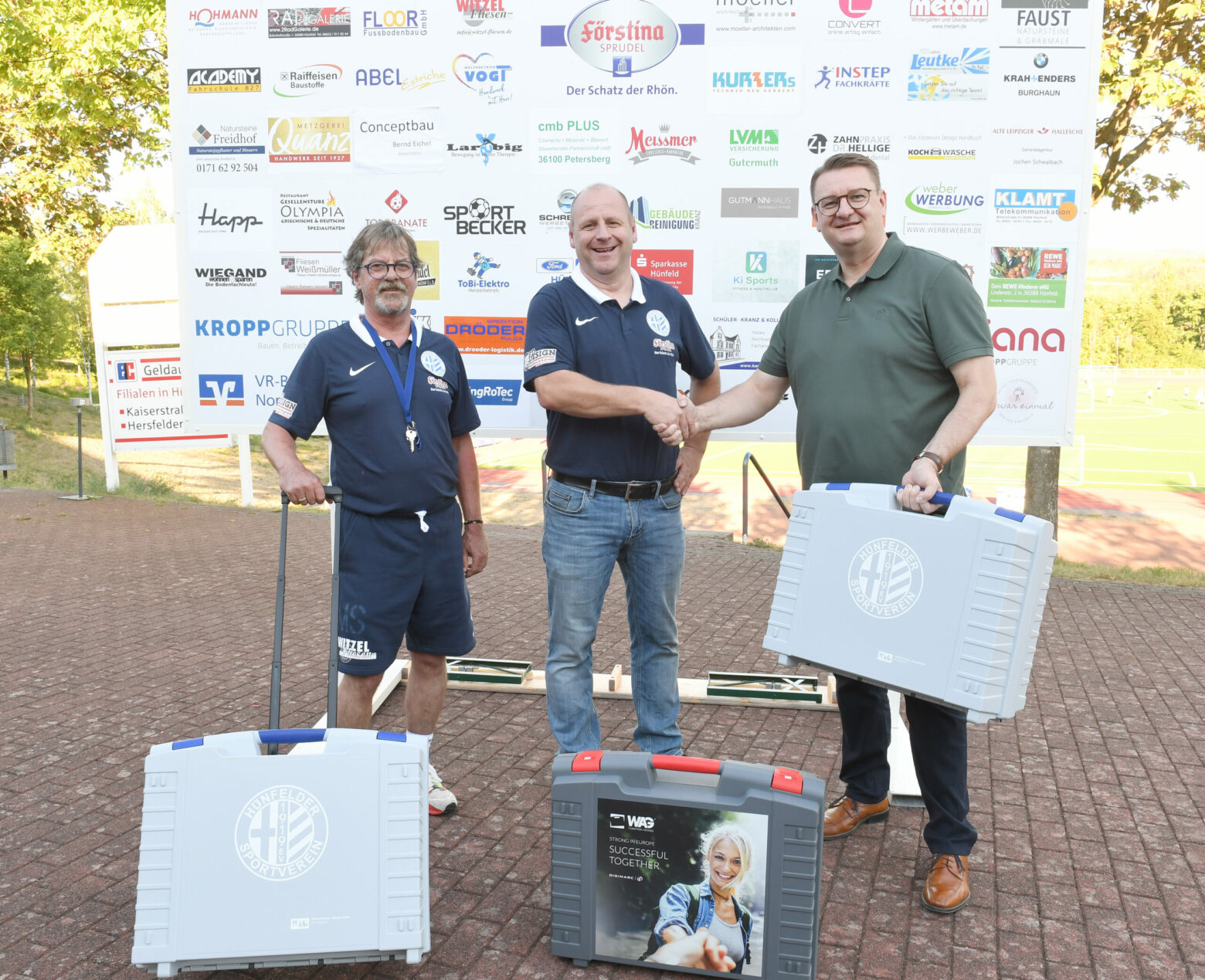 Michael Müller von W.AG Funktion + Design GmbH übergab die gesponserten Trikotkoffer