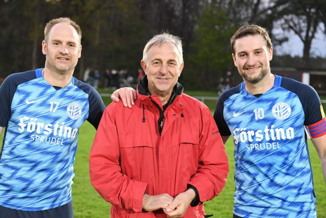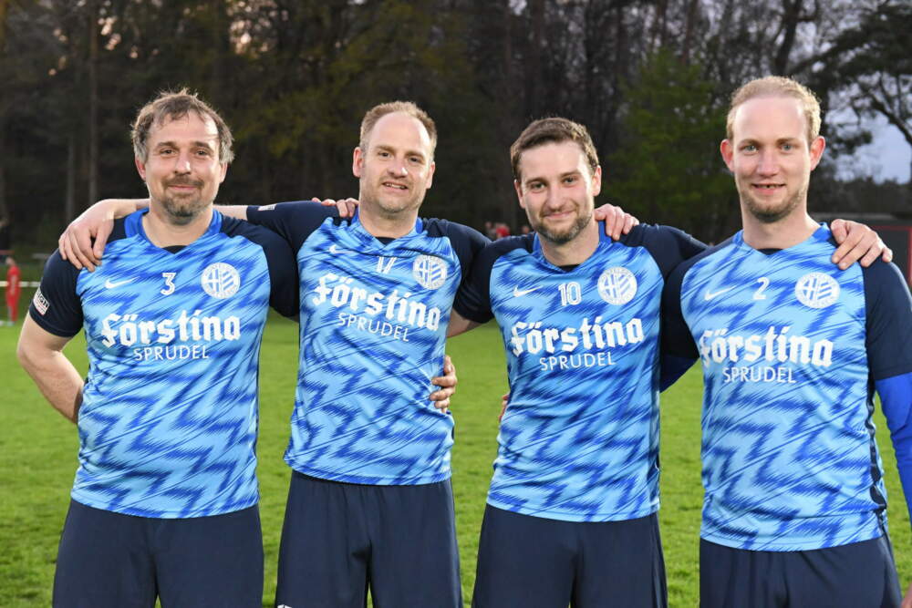 Ein Bild fürs Poesiealbum: Stefan Ohneiser (links) und Simon Grosch (rechts) feierten außergewöhnliche Comebacks – und die Rohdes Mario (Zweiter von links) und Julian spielten erstmals gemeinsam in einem Pflichtspiel. © Siggi Larbig
