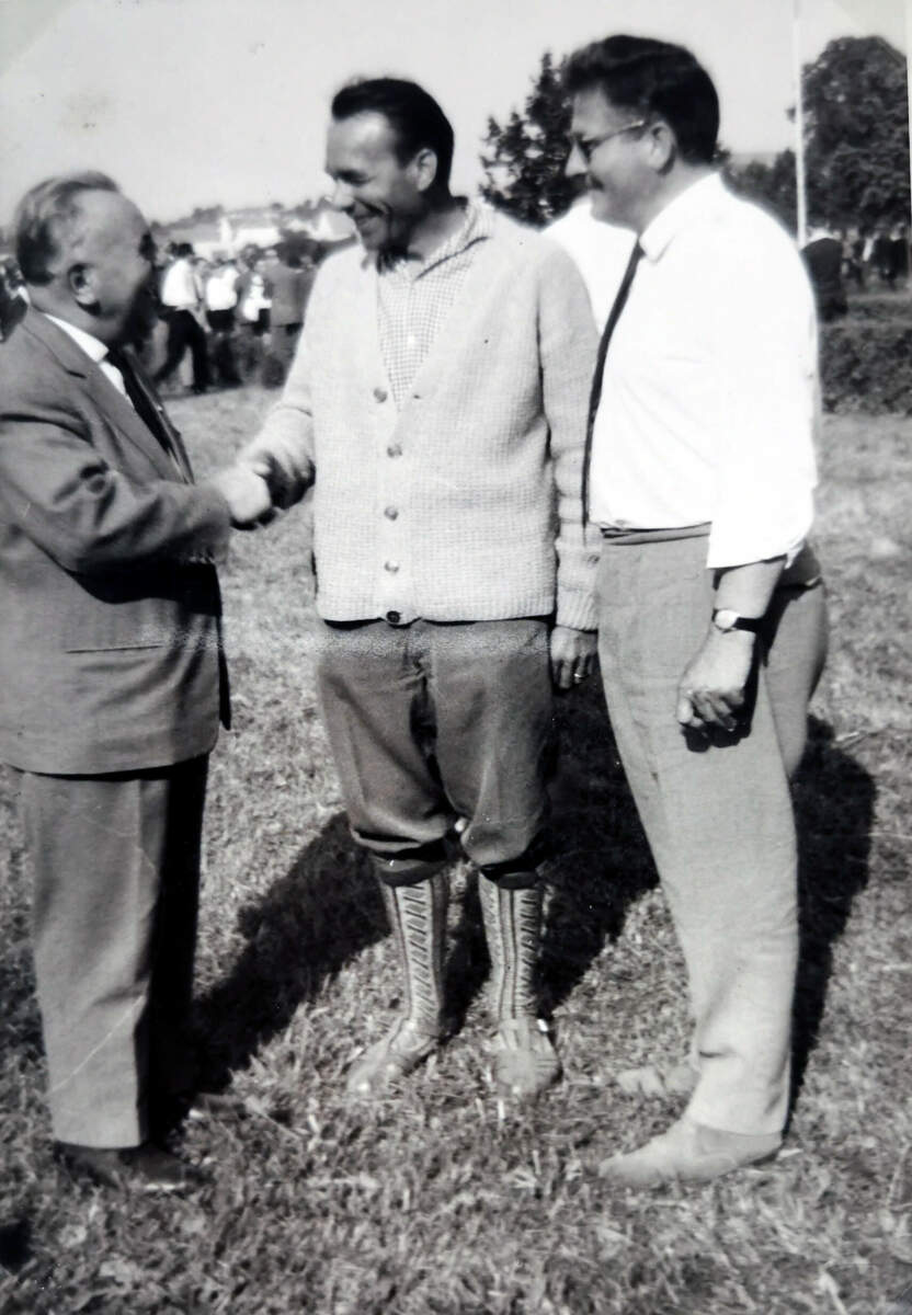 Saison 1961/62 Karli Kircher im Zweikampf mit Flinner