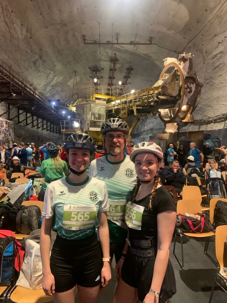 23 Kilometer bei 21 Grad, 500 Meter unter der Erde und diesmal zu Dritt: Beim 16. Kristallmarathon starteten unter 800 Teilnehmern im Erlebnisbergwerk Merkers auch