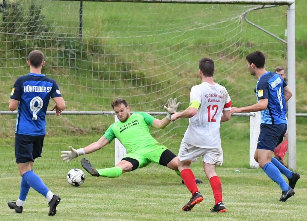 HSV ganz souverän Bereits nach sieben Minuten war klar, dass in Stockhausen von einem Coup keine Rede sein wird. Zu konzentriert startete Hessenligist Hünfeld, gewann